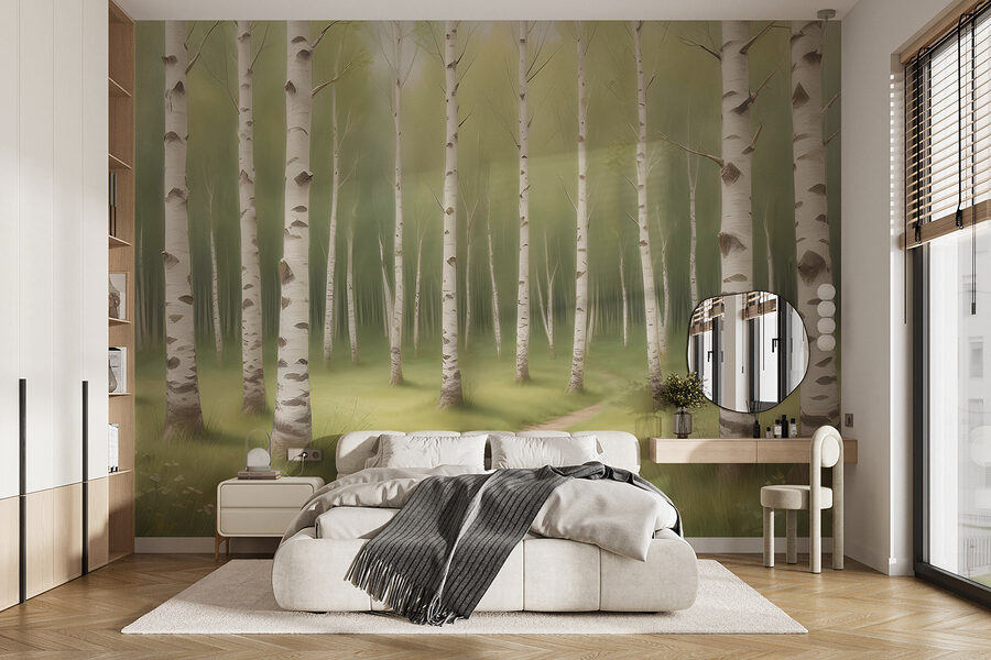 Proměňte každou místnost pomocí okouzlující nástěnné malby “Cesta lesem”. Představte si, že vstoupíte do klidného lesa, kde jemné sluneční světlo proniká skrz břízy a jemný vánek šeptá přísliby dobrodružství. Je to jako mít kousek přírody přímo na stěnách. Uklidňující zelená a bílá barva této nástěnné malby, která se skvěle hodí do obývacího pokoje nebo útulného zákoutí, vybízí ke klidu. Představte si, že se schoulíte s knihou a přenesete se do klidného úniku, aniž byste museli opustit domov. Navíc je vynikajícím pozadím pro důležité selfie s pokojovými rostlinami. Kdo by řekl, že zdobení může být tak osvěžující?