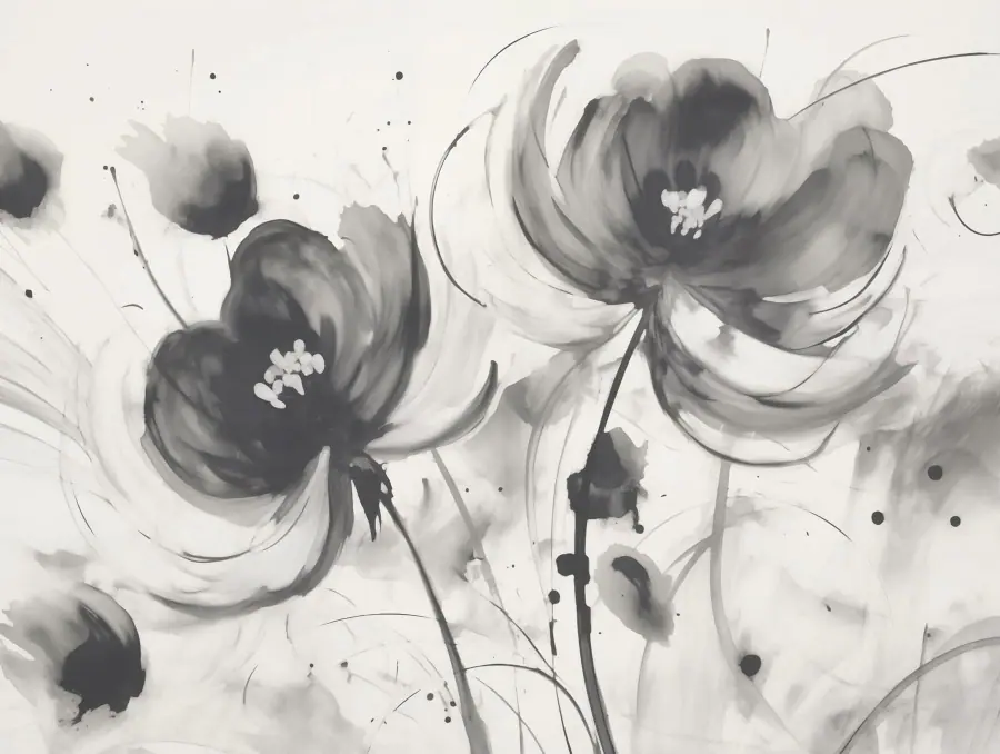 Proměňte svůj prostor pomocí této úžasné nástěnné malby s jemným květinovým obrazem, který tančí na jasně bílém pozadí. Souhra jemné černé a bílé vytváří snovou atmosféru. Představte si, že vstoupíte do svého pokoje a budete se cítit o něco uvolněněji, o něco inspirativněji. Je to jako mít kousek přírody přímo na zdi, bez pylové alergie!