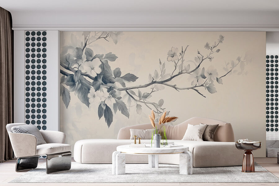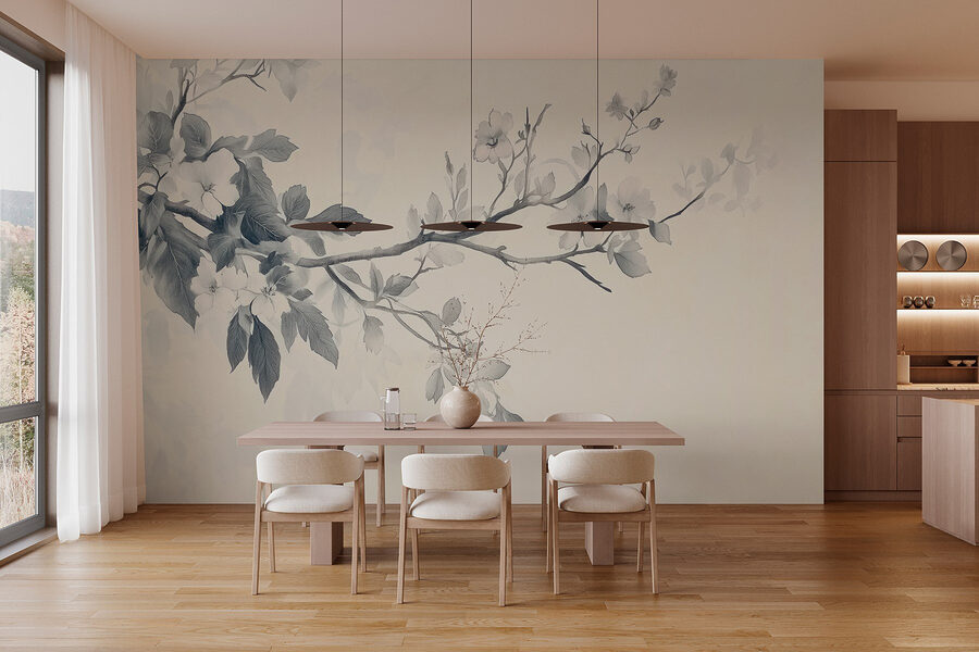 Proměňte svůj prostor pomocí této okouzlující nástěnné malby “Větev s květinami a listy”. Představte si, že se procházíte klidnou japonskou zahradou přímo ve svém obývacím pokoji – blažené, že? Jemné měkké květy a složité listy plují po stěně a dodávají jí nádech klidu, který je stejně osvěžující jako ranní vánek. Je to jako umělecké dílo přírody, které bez námahy rozzáří každý nudný kout. Je ideální pro denní snění nebo útulné večery, vybízí k hřejivosti a relaxaci. Každý pohled může vyvolat vzpomínku na krásnou procházku zahradou nebo na to, jak jste jednou při obdivování květin ztratili pojem o čase. Mluvte o malé oáze!