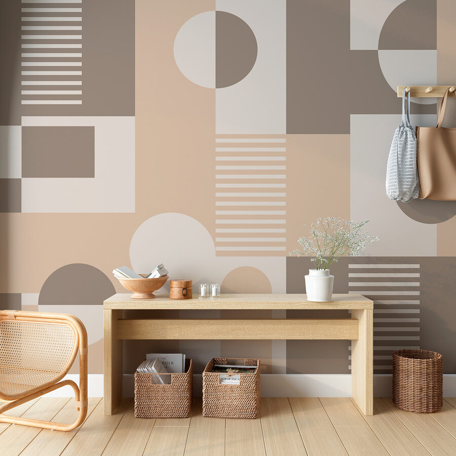 Proměňte každou místnost pomocí této stylové nástěnné malby s hravou směsicí geometrických tvarů. Jemné zemité tóny vytvářejí uklidňující atmosféru, která je ideální pro relaxační večery nebo veselá setkání. Představte si, jak popíjíte kávu, zatímco světlo tančí od těchto ostrých linií a dodává prostoru pocit života. Každý tvar jako by vyprávěl malý příběh – odkud se vzal ten kruh? Je to měsíc? Útulný snídaňový talíř? Ideální do obývacího pokoje nebo domácí kanceláře, podněcuje kreativitu, aniž by zahlcoval smysly. Je to jako mít kus moderního umění, ale mnohem jednodušší na zavěšení!