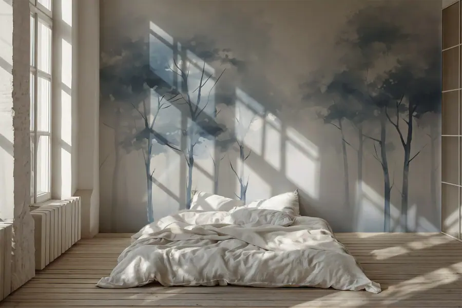 Proměňte jakýkoli prostor pomocí této klidné nástěnné malby stromů v mlžném lese. Představte si, že vstoupíte do klidného lesa, kde se kolem vysokých štíhlých kmenů kroutí mlha. Je to jako jemné objetí přírody – ideální pro vytvoření klidné atmosféry v obývacím pokoji, ložnici nebo útulném čtecím koutku. Představte si, že popíjíte ranní kávu zahaleni do této klidné scény a máte pocit, že jste se schovali do tichého útočiště. Není to jen dekorace, ale i zlepšovač nálady. Připomínka toho, že trocha přírody může být i v interiéru velmi užitečná!