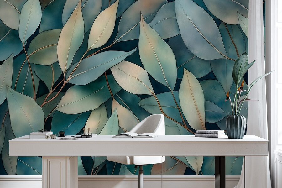 Vneste do interiéru závan čerstvého vzduchu s touto nádhernou nástěnnou malbou se svěží skupinou listů na uklidňujícím modrém pozadí. Představte si, jak se probouzíte a popíjíte kávu obklopeni tímto klidným šuměním přírody. Je to jako mít mini deštný prales přímo ve svém obývacím pokoji. Ideální pro ty, kteří touží po troše zeleně, ale nemusí mít zelený palec. Každý list jako by tančil a vybízel k pocitu klidu a rozmarnosti. Ať už se nachází v útulném čtecím koutku nebo v živé kuchyni, tato nástěnná malba navodí tu správnou atmosféru – řekněme, že se s ní dá mluvit!