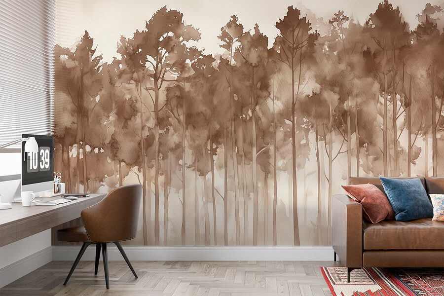 Proměňte stěnu v klidné útočiště pomocí této nástěnné malby “Skupina stromů v mlžném lese”. Představte si, že pokaždé, když vejdete do místnosti, vstoupíte do zasněné lesní krajiny. Jemné akvarelové odstíny vytvářejí uklidňující atmosféru, která jen našeptává klid. Je to jako způsob, jakým vás příroda zabalí do útulného objetí – bez otravných brouků!