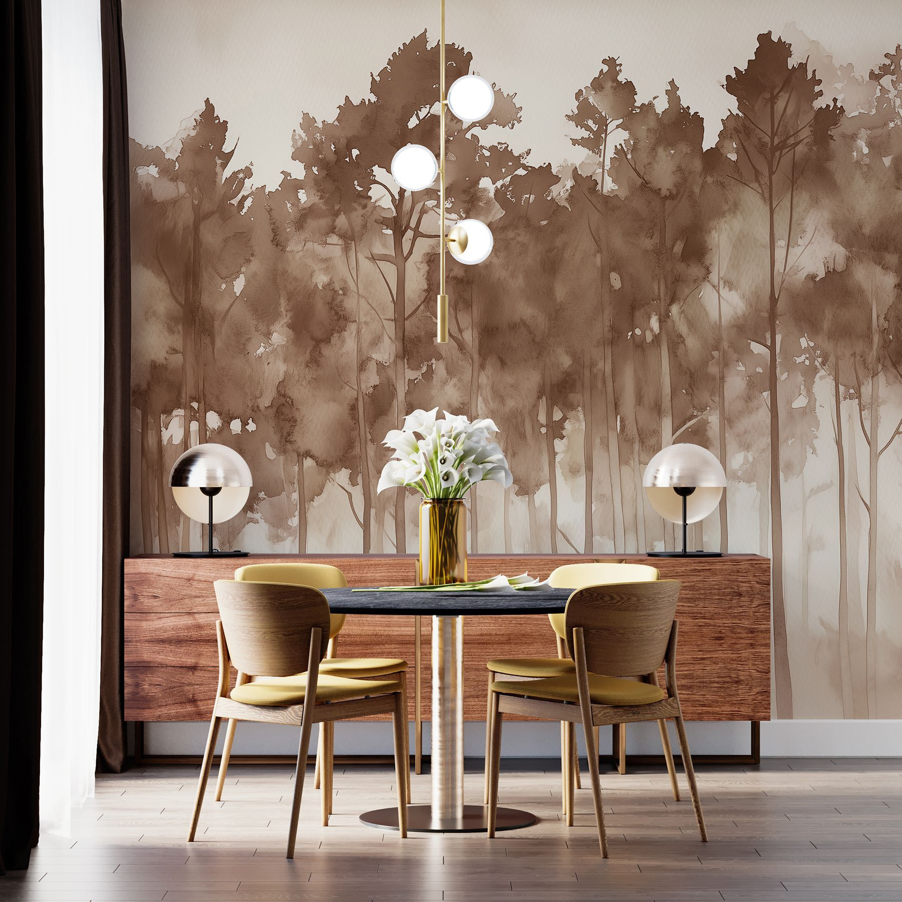 Tato nástěnná malba je také perfektním začátkem konverzace. Představte si, jak přátelé při popíjení kávy komentují její kouzlo, které zlepšuje náladu. Ať už se jedná o útulný čtecí koutek nebo nenápadný obývací pokoj, tento kousek dodá eleganci. Jemná mlha dodává nádech tajemna a vyvolává sny o lesních dobrodružstvích. Kdo by to nechtěl? Skvěle se hodí pro dny, kdy je závan čerstvého vzduchu jen na pohled!
