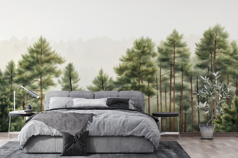 Proměňte svůj prostor pomocí této úžasné nástěnné malby “Skupina stromů v lese”. Představte si to: každé ráno se probudíte do klidného lesa přímo u vás doma. Jen si představte ty uklidňující účinky – jako útulné objetí od samotné přírody. Měkká zeleň a jemná mlha vás vtáhnou dovnitř a přivolají pocit klidu a pohody. Je to jako mít svůj vlastní kousek přírody, bez brouků a bláta. Ideální pro vytvoření útulného čtecího koutku nebo osvěžující akcentní stěny. Kdo potřebuje dovolenou, když si může krásu lesa přenést do interiéru? Přidejte dotek kouzla přírody a připravte se na pořádné snění.