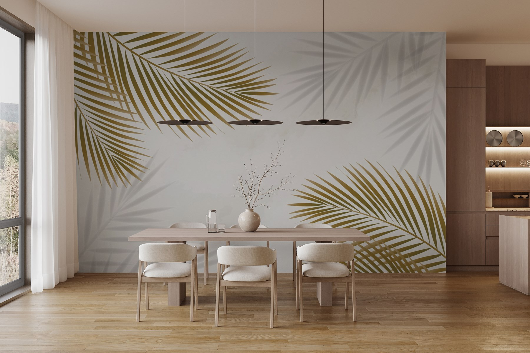 Proměňte svůj prostor v tropický únik s touto úžasnou nástěnnou malbou se skupinou listů tančících na jemném bílém pozadí. Představte si, že vejdete do svého pokoje a přivítá vás jemné pohupování palmových listů, jako byste vstoupili přímo do oázy klidu. Je to jemné, ale přesto působivé – ideální pro vnesení doteku přírody do interiéru bez starostí se zaléváním rostlin! Tato nástěnná malba dodá osvěžující atmosféru, ať už se nachází v útulném obývacím pokoji, nebo v klidné ložnici. Přátelé si možná spletou váš domov s elegantním ostrovním útočištěm – popíjení kokosové vody je zcela nepovinné, ale velmi doporučené!