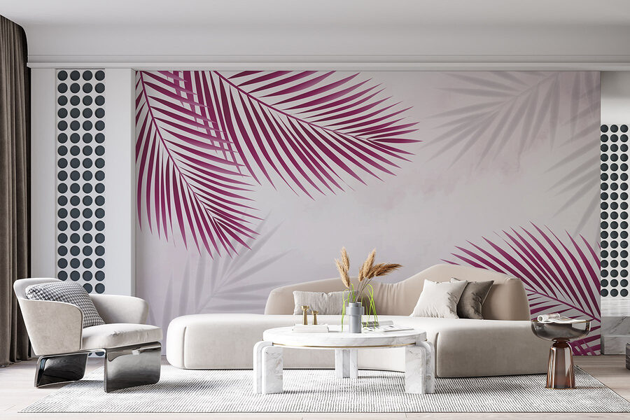 Proměňte jakýkoli prostor pomocí této živé nástěnné malby s úžasnými fialovými listy na svěžím bílém pozadí. Představte si, že vejdete do místnosti a budete se cítit jako na tropické dovolené, aniž byste si museli balit kufr. Tyto odvážné listy upoutají pozornost a vytvoří pocit energie – ideální pro živou kuchyň nebo útulný obývací prostor.