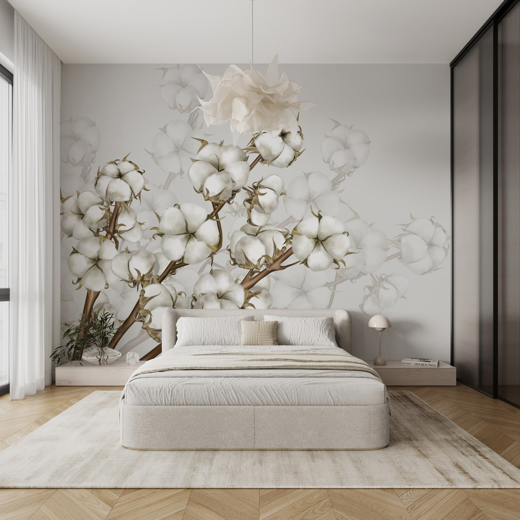 Představte si, jak při pohledu na tuto nástěnnou malbu popíjíte kávu a necháváte se unášet klidem – ideální pro chvíle “ahhh”. Jako by se příroda rozhodla zaskočit na návštěvu, a kdo by to nechtěl? Ať už máte rádi botanické vzory, nebo jen potřebujete dotek květinového kouzla, tato nástěnná malba se sem hodí. Nechte ji zažehnout radost a rozjasnit váš den!