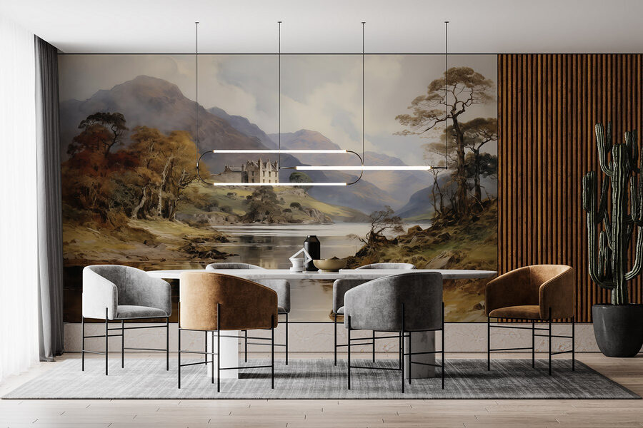 Proměňte jakoukoli místnost v útulné útočiště díky této nádherné akvarelové tapetě s motivem hradu na kopci, obklopeného bujnými stromy a majestátními horami. Pokaždé, když kolem něj projdete, budete mít pocit, jako byste vstoupili do pohádky. Představte si to – relaxujete na gauči, popíjíte čaj a vaše stěny ožívají snovou krajinou. Jemné barvy přinášejí teplo, aniž by byly příliš dominantní, a jsou ideální pro chvíle, kdy potřebujete jen klidnou atmosféru. A kdo by nechtěl majestátní výhled na hrad bez nutnosti cestování? Stačí jen trocha magie, aby se váš každodenní život rozzářil!