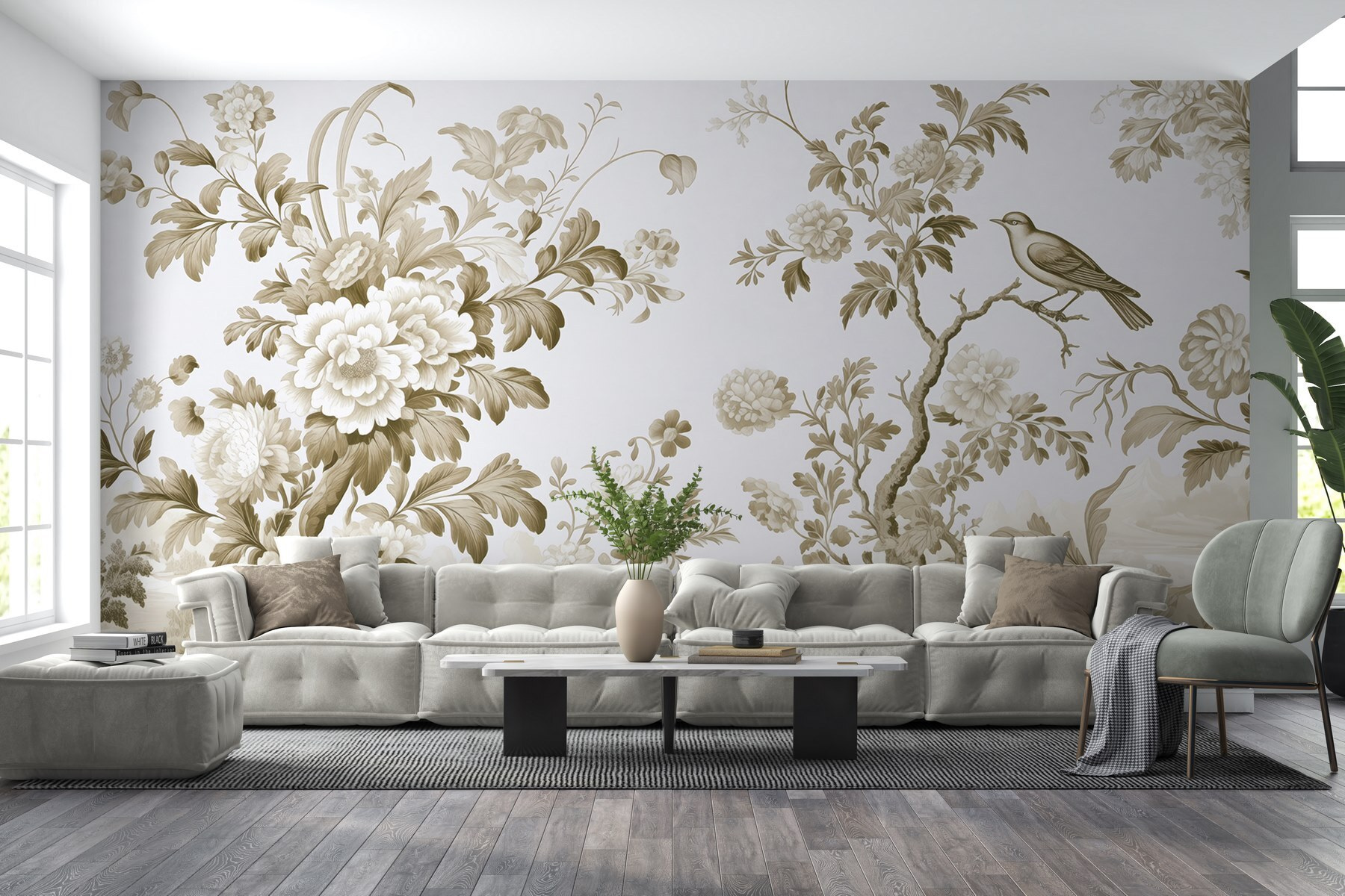 Proměna vašeho prostoru je nyní mnohem snazší díky této okouzlující tapetě, která představuje snovou kombinaci květin a stromů. Představte si, že vstoupíte do svého pokoje a máte pocit, jako byste se ocitli v klidné zahradě, kde na elegantních větvích sedí jemní ptáčci. Uklidňující tóny inspirované přírodou dodávají pokoji nádech klidu, díky čemuž je tapeta ideální pro útulný koutek nebo živý obývací pokoj. Je to jako pozvat si venkovní prostředí dovnitř, ale bez otravného hmyzu! Ať už hostíte přátele nebo si vychutnáváte šálek čaje v klidu, tato tapeta navodí tu správnou atmosféru. Pokaždé, když kolem ní projdete, budete snít o slunečných odpolednech a rozkvetlých květinách. Navíc je to stylový způsob, jak proměnit vaši zeď v umělecké dílo bez rozstříknutí barvy!