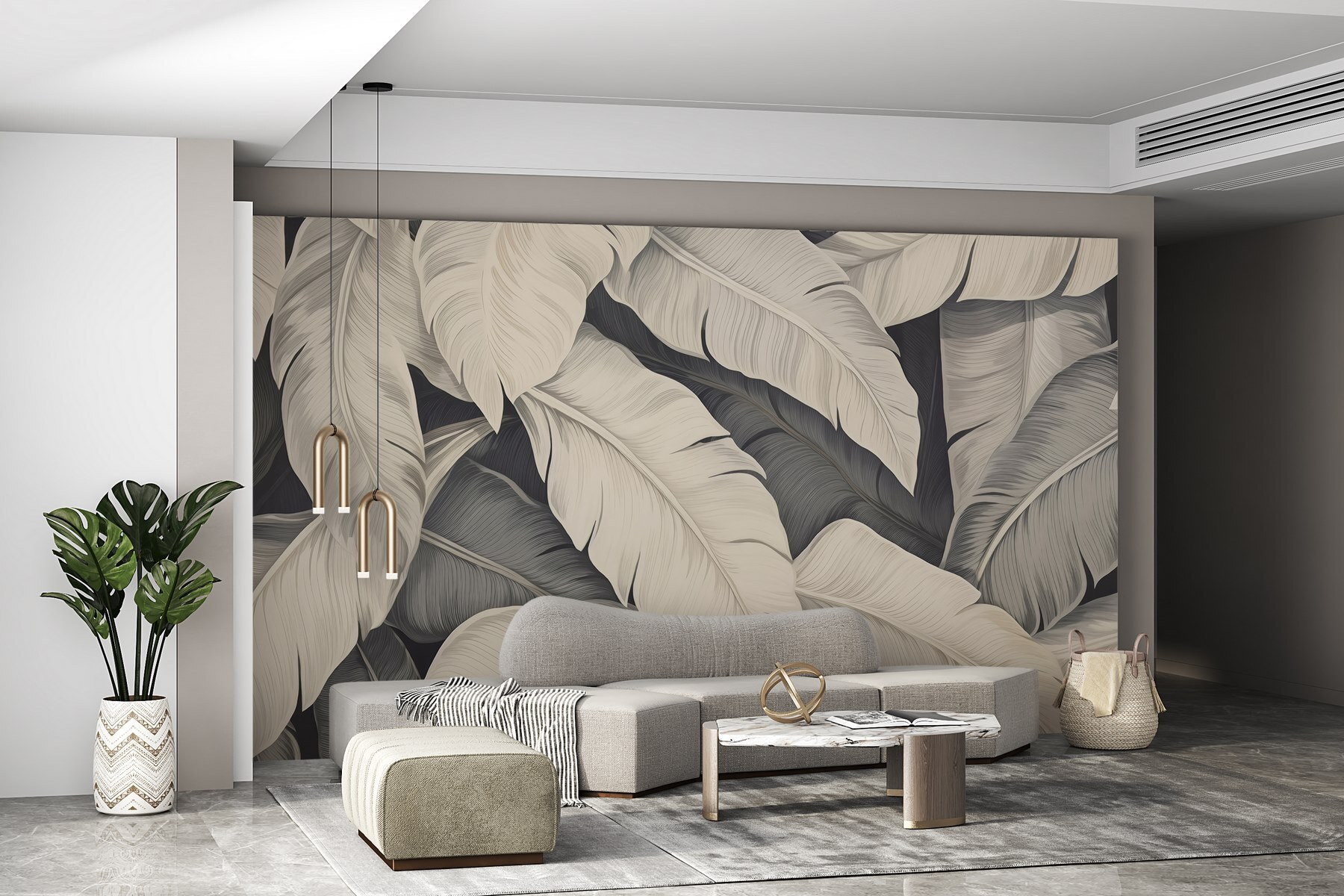 Každý list tančí na vaší zdi a zve vás k relaxaci a odpočinku. Jemné tóny jsou uklidňující – ideální pro mazlení s knihou nebo popíjení toho podivně specifického bylinného čaje. Přátelé vám možná dokonce pochválí váš elegantní vkus a budou se divit, jestli se ve vašem domě neskrývá tajná zahrada. Vážně, tato nástěnná malba může snadno vyvolat sny o tropických únicích. A kdo by nemiloval malé dobrodružství, aniž by opustil pohovku?