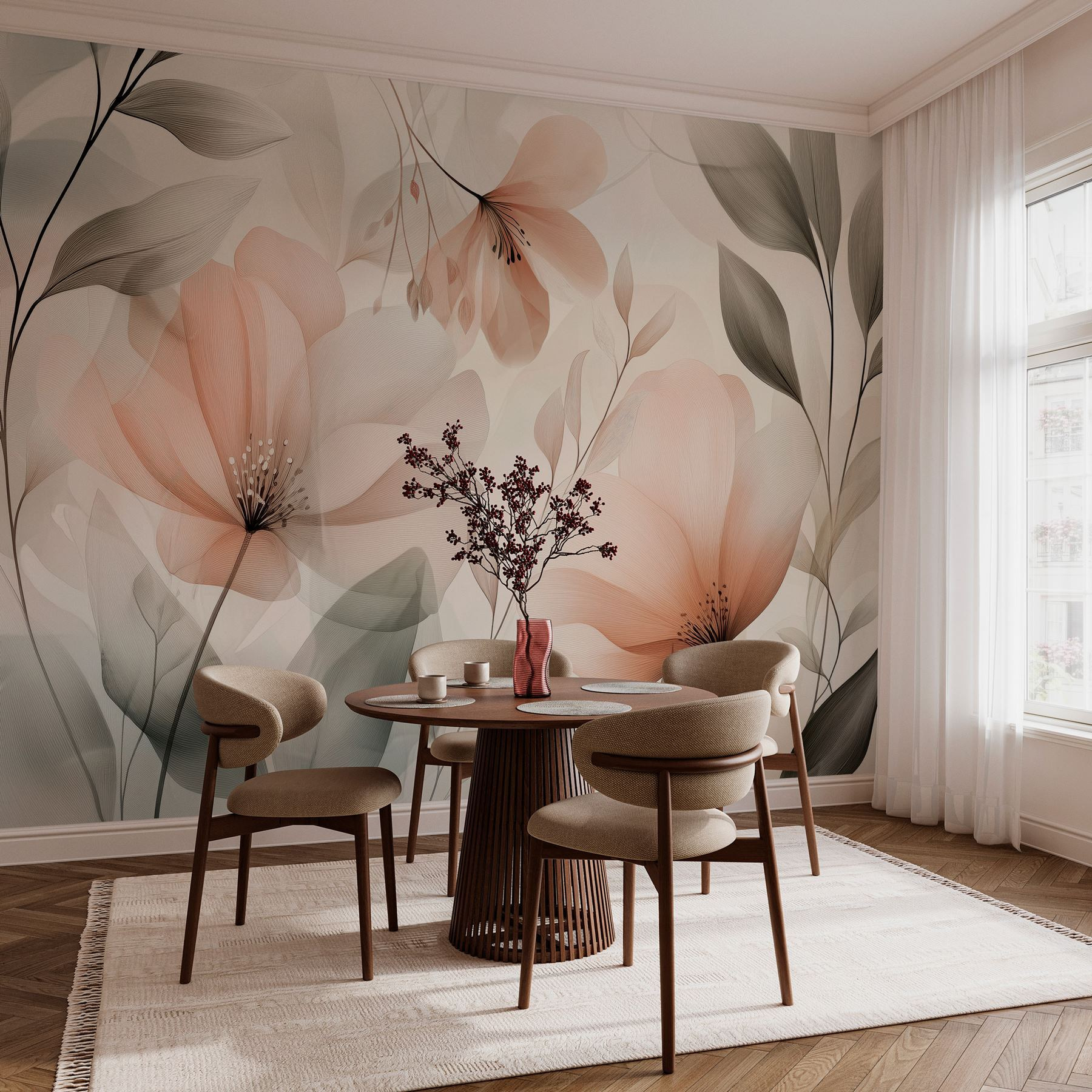 Transform any space into a serene sanctuary with “Delicate Petals in Soft Pastel Hues.” This stunning mural bathes your room in gentle colors that whisper peace. Imagine waking up, sunlight streaming through the window, and being greeted by the soft blush of blossoms that seem to float right off the wall. It’s like having a garden without the upkeep—no watering needed, promise! Perfect for a cozy reading nook or that bare wall just begging for some charm. Visitors might find themselves lingering, marveling at the soothing vibes and dreamy aesthetics. Who knew decor could spark such joy? It’s subtle yet striking, inviting and refreshing, making every glance feel like a little escape.