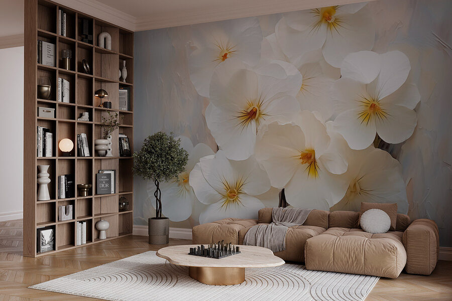 Proměňte svůj prostor v klidnou zahradu pomocí nástěnné malby Skupina bílých květin. Představte si, že popíjíte ranní kávu obklopeni jemnými okvětními lístky, jako by dovnitř vstoupila sama příroda. Tyto květy vnesou do každé místnosti nádech klidu a elegance, takže se v ní budete cítit jako v zářivém jarním dni. Jemné bílé odstíny krásně tančí na světlém pozadí a vybízejí oko, aby se na nich zdrželo. Ať už se nachází v útulném zákoutí nebo v živém obývacím prostoru, tato nástěnná malba šeptá k srdci a připomíná každému, že krása je vzdálená jen na jeden pohled. Ideální pro snění, povídání nebo prostě jen pro vychutnání klidné chvíle.