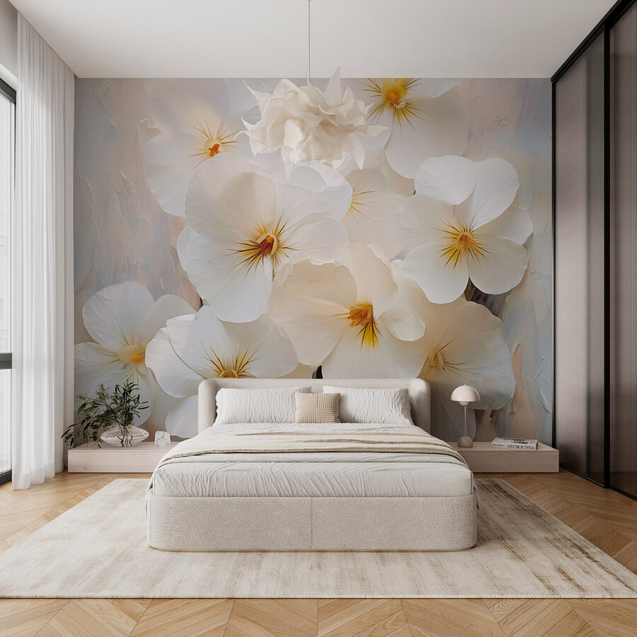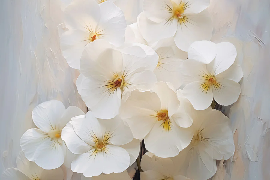 Proměňte svůj prostor v klidnou zahradu pomocí nástěnné malby Skupina bílých květin. Představte si, že popíjíte ranní kávu obklopeni jemnými okvětními lístky, jako by dovnitř vstoupila sama příroda. Tyto květy vnesou do každé místnosti nádech klidu a elegance, takže se v ní budete cítit jako v zářivém jarním dni. Jemné bílé odstíny krásně tančí na světlém pozadí a vybízejí oko, aby se na nich zdrželo. Ať už se nachází v útulném zákoutí nebo v živém obývacím prostoru, tato nástěnná malba šeptá k srdci a připomíná každému, že krása je vzdálená jen na jeden pohled. Ideální pro snění, povídání nebo prostě jen pro vychutnání klidné chvíle.
