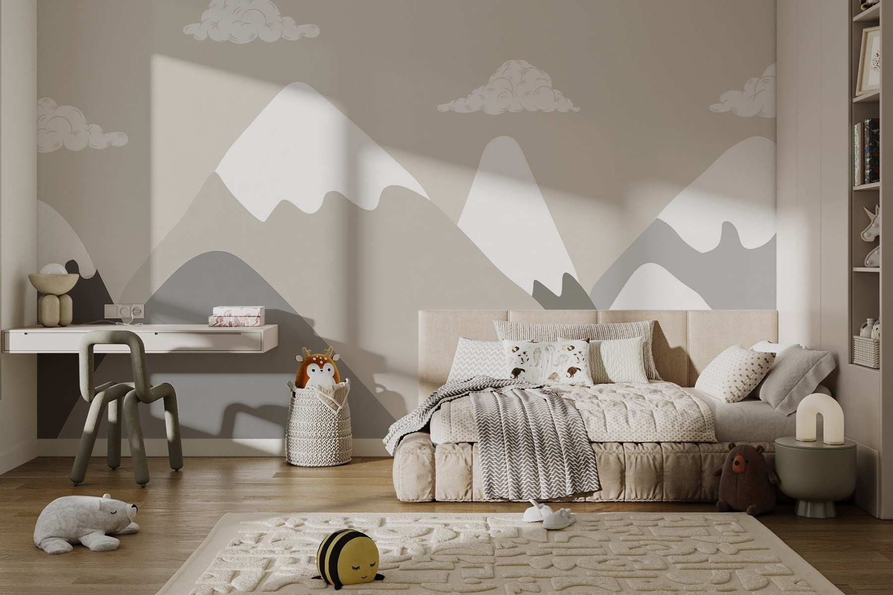 Proměňte svůj prostor pomocí této úchvatné tapety s horským masivem, kde nad klidnými vrcholky tančí měkké mraky. Je to jako mít miniaturní únik přímo na své zdi! Představte si, jak popíjíte kávu a přitom se díváte na ty nádherné, zvlněné hory. Nejsou jen hezké, ale vybízejí k snění a trochu k touze po cestování. Navíc tlumené barvy dokonale ladí s jakoukoli místností. Ať už je to obývací pokoj, útulný koutek na čtení nebo dokonce domácí kancelář, tato tapeta přináší uklidňující atmosféru. Je to způsob, jakým příroda říká: „Zhluboka se nadechněte a relaxujte.“ Jen si představte – každý den by mohl začínat a končit takovým výhledem.