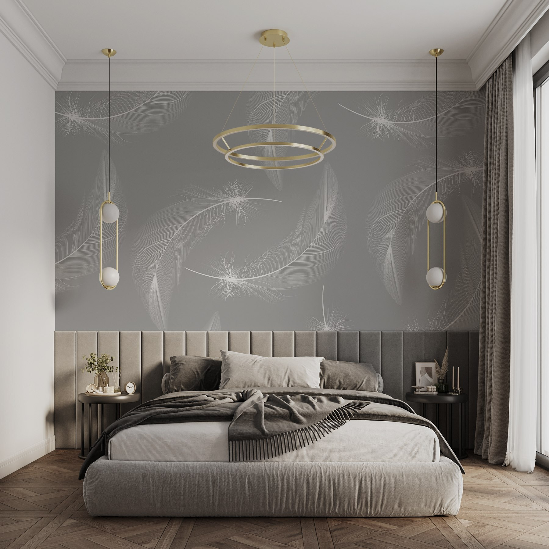 Proměňte jakýkoli prostor v klidnou svatyni pomocí těchto nástěnných maleb s jemným bílým peřím tančícím na měkkém šedém pozadí. Je to jako mít v interiéru jemný vánek, který šeptá elegantní klid. Představte si, že vejdete do místnosti, která je okamžitě lehčí a kde vás každý pohled přenese do zasněného úniku. Tato peříčka se skvěle hodí do útulného čtecího koutku nebo do klidné ložnice a dokáží zjemnit atmosféru. Vybízejí ke snění a navozují klid, takže je těžké se alespoň trochu neusmívat. Kdo by se necítil povznesen takovým okouzlujícím pohledem?