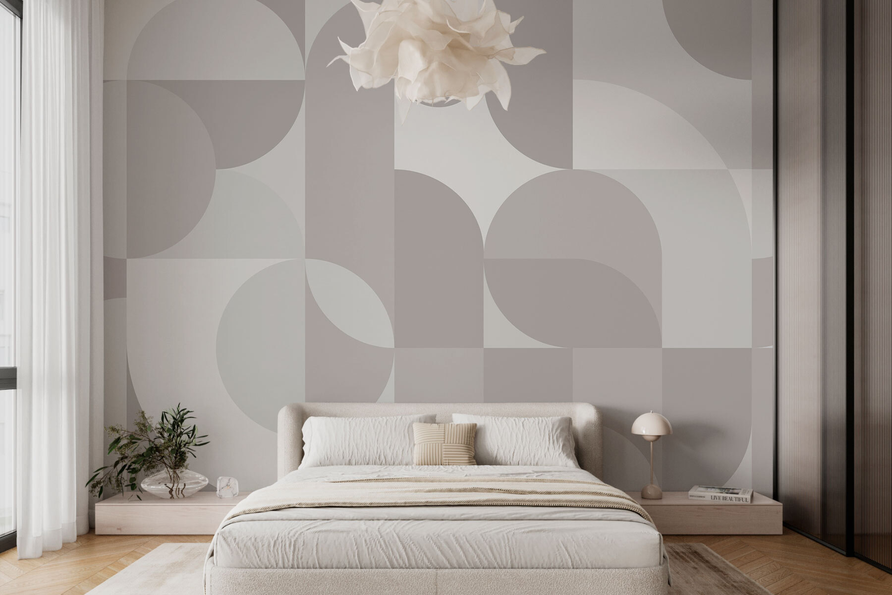 Proměňte svůj prostor ve stylové útočiště s touto šedobílou geometrickou tapetou. Je jako útulné objetí pro vaše stěny, spojující moderní sofistikovanost a hravé vzory. Představte si to: slunečné odpoledne, setkání s přáteli a oči všech upřené na tuto úchvatnou kulisu – to určitě vyvolá živé konverzace! Jemné tóny vytvářejí uklidňující atmosféru, ideální pro relaxaci s knížkou nebo jen pro snění. Navíc je to perfektní plátno pro váš eklektický dekor. Kdo by řekl, že stěny mohou být tak zajímavé?