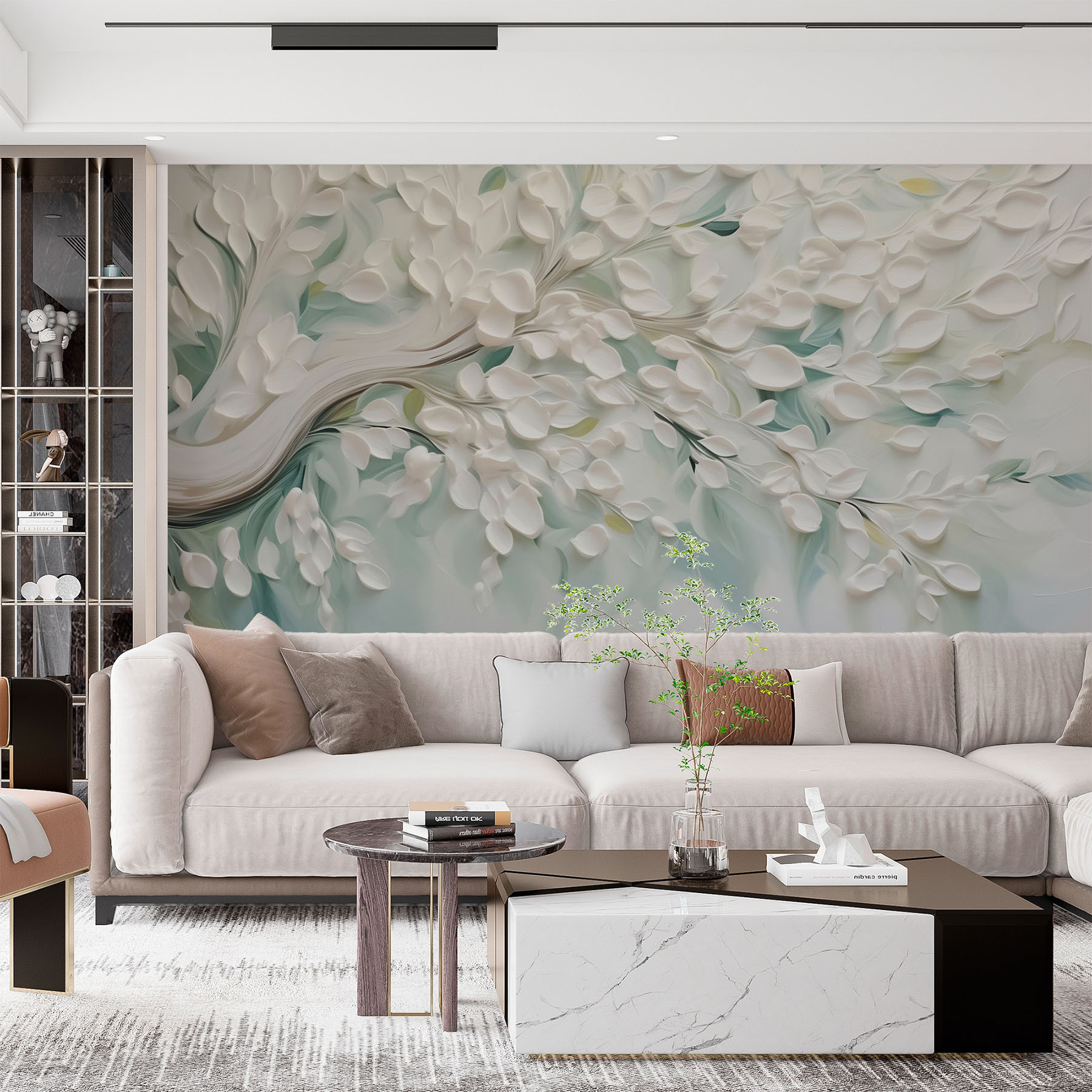 Proměňte svůj prostor pomocí této úchvatné tapety s motivem klidného bílého stromu zdobeného jemnými listy. Je to jako závan čerstvého vzduchu pro vaše stěny! Představte si to: vejdete do obývacího pokoje a najednou vás obklopí uklidňující atmosféra přírody, díky které se každá šálek kávy stane malým únikem z reality. Jemné barvy a krásné textury navozují pocit klidu, takže se možná zastavíte, abyste to vše vnímali. Tato tapeta, která je ideální pro útulné koutky nebo jako dramatický výrazný prvek, vnáší do vašeho domova nádech elegance a šepot krásy přírody. Kdo by řekl, že zeď vám může přinést tak dobrý pocit?