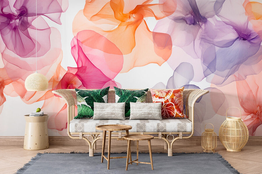 Rozjasněte každou místnost touto nádhernou tapetou s úchvatnou skupinou květin v snové kombinaci barev. Představte si, že se probouzíte za doprovodu jemné vlny akvarelových okvětních lístků, z nichž každý odstín jemně hraje se světlem a vytváří klidnou a povznášející atmosféru. Je to jako mít vlastní malou zahradu, ale bez pylu a plevele!