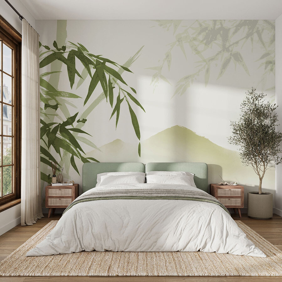 Proměňte obyčejnou zeď v klidné útočiště pomocí tapety „Uklidňující bambus a horská krajina“. Představte si, že vejdete do svého pokoje a okamžitě vás zaplaví vlna klidu. Jemné zelené barvy a něžné obrazy bambusu vám téměř umožní slyšet šumění listí ve větru v lese. Představte si, jak popíjíte čaj a pozorujete ty hory – ach, nic se nevyrovná malé dovolené doma! Je ideální pro vytvoření útulného koutku nebo pro přidání nádechu přírody do jakéhokoli prostoru. Ideální pro ty chvíle, kdy prostě potřebujete zastavit a nadechnout se. Tak proč si trochu přírody nevpustit dovnitř?