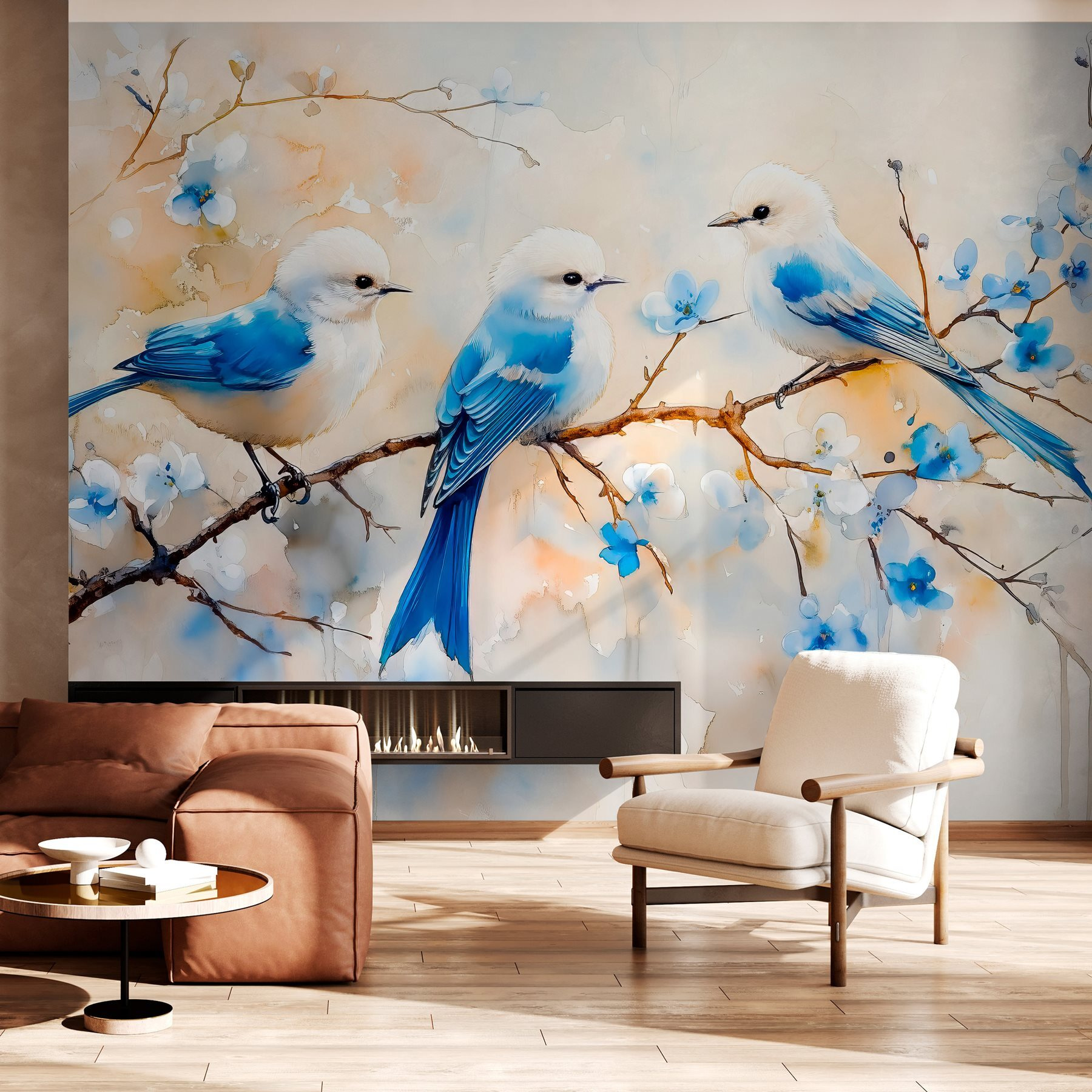 Brighten up any room with this charming wall mural featuring a delightful trio of blue birds perched on a softly blooming branch. It’s like inviting nature into your space without the risk of those bird songs waking you up at dawn! The watercolor effect adds a dreamy vibe, perfect for creating a serene atmosphere. Imagine sipping tea or coffee in a cozy nook, all while being serenaded by these feathered friends. Use it in a nursery, living room, or even a workspace to inspire creativity. The blues and gentle blossoms make it feel like spring—any season, any time. Who wouldn’t smile at those cute little faces?