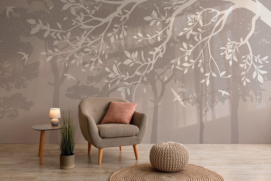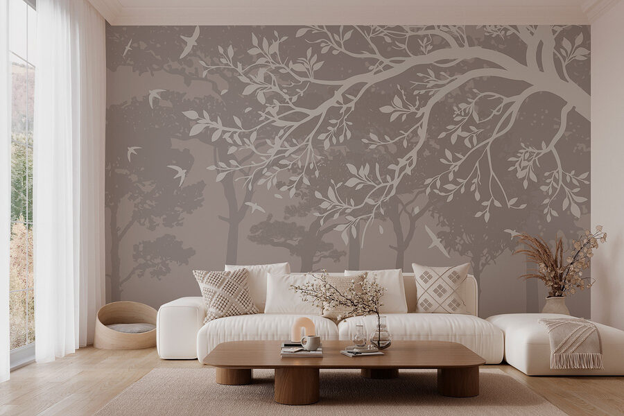 Proměňte svůj prostor pomocí této úchvatné tapety, která zobrazuje klidnou skupinu stromů a ptáky vznášející se ve vzduchu. Je to jako vstoupit do tichého lesa – bez hmyzu a vlhkosti. Představte si útulný obývací pokoj nebo uklidňující ložnici, kde tento kousek vnáší do interiéru nádech přírody. Elegantní větve stromů tančí po vaší zdi a vytvářejí atmosféru klidu, která vám téměř dá zapomenout na hromadu prádla v rohu. Ať už se jedná o kreativní kout nebo čtecí koutek, tato tapeta snadno obklopí každou místnost teplem a šarmem. Navíc je to okamžitý podnět k rozhovoru – kdo by nechtěl povídat o atmosféře městské džungle? Dotek přírody nikdy nikomu neublížil, že?