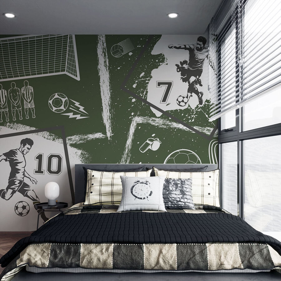 Proměňte svůj prostor pomocí této živé nástěnné malby „Koláž různých sportovních obrázků“. Je to jako mít vzrušení ze hry přímo ve svém obývacím pokoji! Představte si to: přátelé se sešli, oči upřené na detaily fotbalové akce, boty, trofeje a – oh, je to píšťalka rozhodčího? Každý prvek vypráví příběh o týmové práci, vášni a těch napínavých momentech, kdy se míč chystá zasáhnout síť. Tato tapeta je ideální pro sportovní nadšence nebo kohokoli, kdo ocení pořádnou dávku energie, a přináší veškeré vzrušení bez nutnosti rozhodčího. Rozlučte se s nudnými stěnami – je čas oživit svůj interiér!