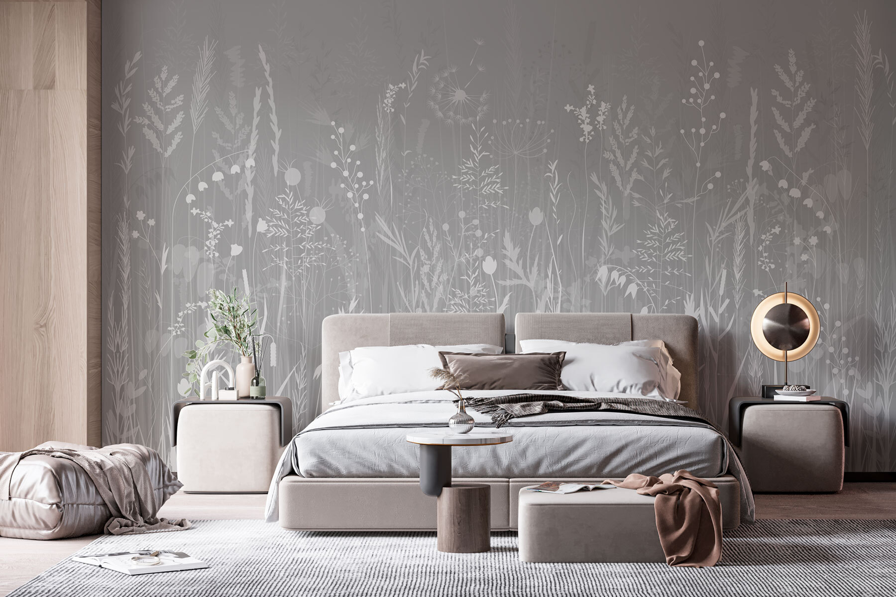 Proměňte jakýkoli prostor pomocí této úchvatné tapety s pohádkovým šedým pozadím zdobeným jemnými travinami a květinami. Představte si, že pokaždé, když vstoupíte do místnosti, ocitnete se na klidné louce – jak osvěžující! Jemný akvarelový design dodává tapetě jemný nádech a vytváří uklidňující atmosféru. Je ideální do útulných obývacích pokojů nebo klidných ložnic, kde vám umožní uniknout do přírody, aniž byste museli opustit domov. Navíc je skvělým tématem k rozhovoru – představte si, o čem si budete povídat u kávy! Milovníci přírody i nadšenci do dekorací budou okouzleni a přinesou si kousek přírody dovnitř, aniž by museli zalévat květiny!