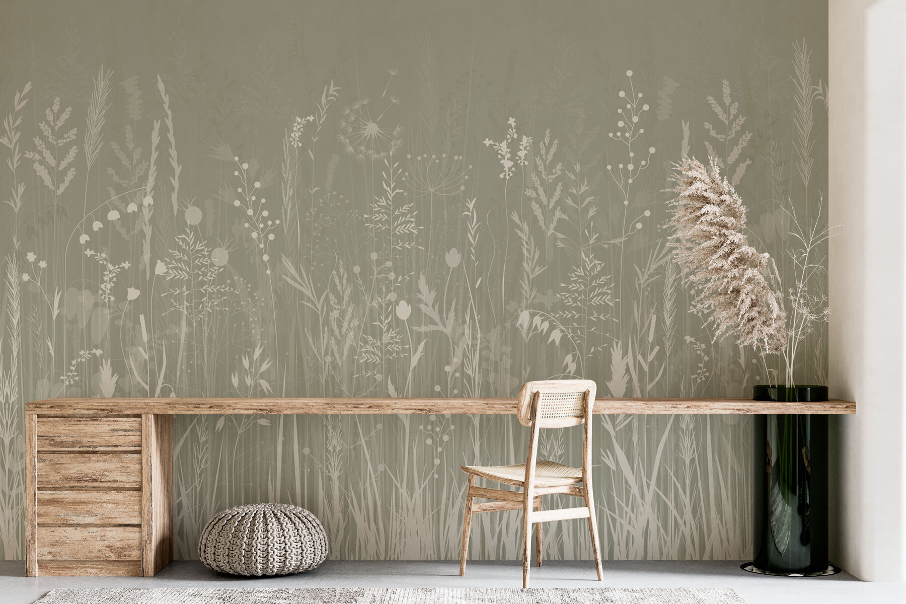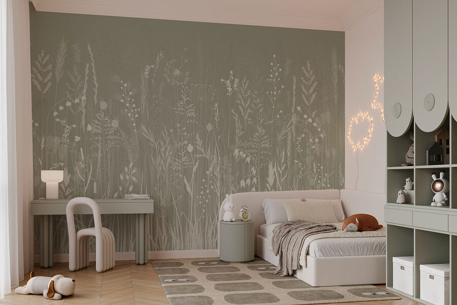 Imagine stepping into a serene field, where wildflowers dance gently in the breeze and grass whispers sweet secrets. This mural, titled “Field of Grass with Flowers,” captures that peaceful vibe perfectly. It’s like bringing a little piece of nature indoors—without the bugs or grass stains! The soft greens and delicate blooms create a calming backdrop, perfect for daydreaming or sipping tea. It’s an effortless way to make a space feel cozy and welcoming. Picture it in a reading nook or a sunlit hallway—talk about a breath of fresh air! Wouldn’t it be lovely to have a constant reminder of nature’s beauty right at home?