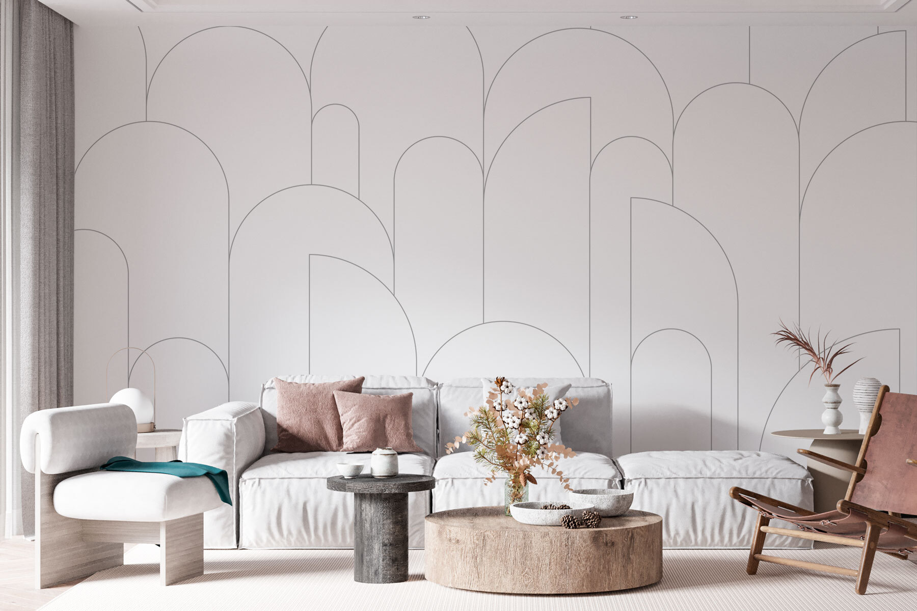 Hravé tvary tančí po stěně, vzbuzují zvědavost a podněcují konverzaci, zatímco minimalistická barevná paleta udržuje věci v rovnováze. Ať už jde o obývací pokoj nebo domácí kancelář, vytváří prostor pro kreativitu. Představte si, jak hostíte přátele s drinkem v ruce, s touto krásou jako pozadím. Tapeta, která nejen zdobí, ale také vybízí k příběhům a smíchu – co na ní nemilovat?
