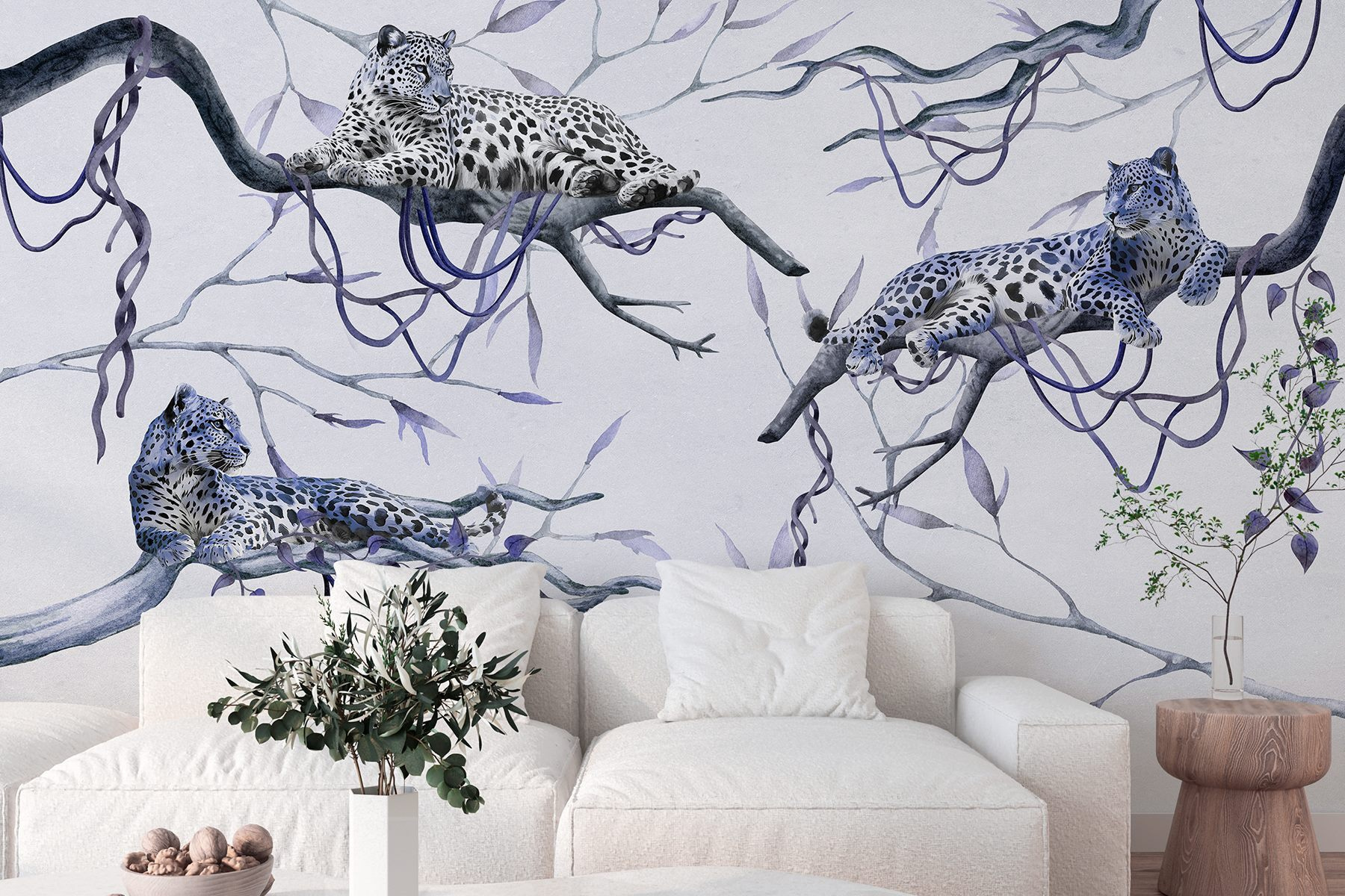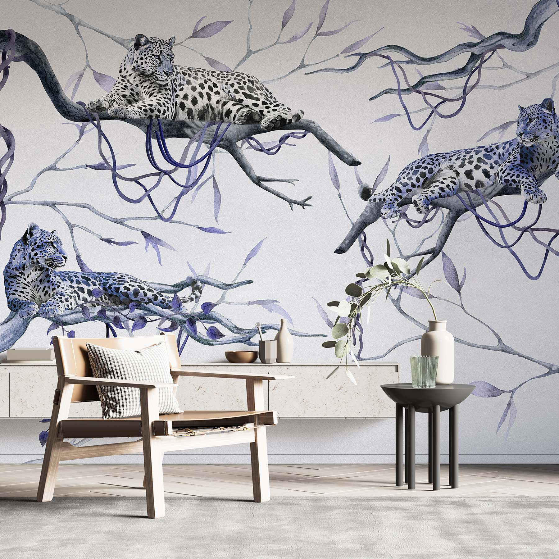 Proměňte svůj prostor v džunglový ráj s touto okouzlující tapetou s leopardy odpočívajícími na větvích. Představte si, že se probudíte a máte pocit, jako byste vstoupili do klidného lesa. Tyto nádherné kočky s výraznými skvrnami a klidným chováním vnášejí do místnosti zcela novou atmosféru. Tato tapeta, která se perfektně hodí do obývacího pokoje nebo útulného koutku, není jen dekorací – je to jako mít kousek přírody přímo doma. Jemné barvy a detailní kresba vybízejí k snění o tropických dobrodružstvích a zároveň nabízejí relaxaci. Je to místo, kde se setkává divoká příroda s teplem – kdo by to nechtěl?