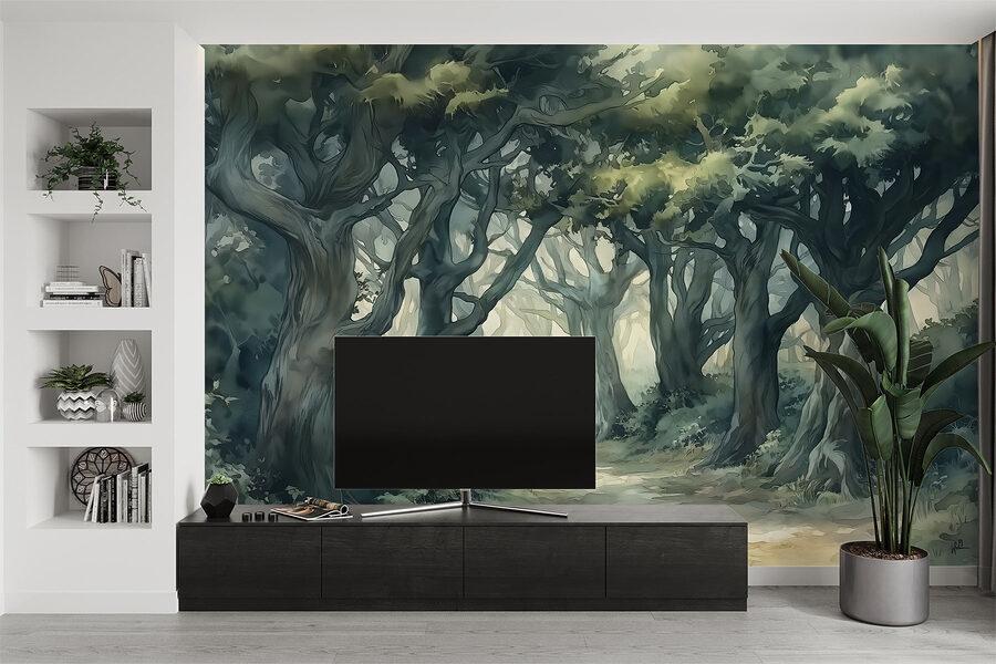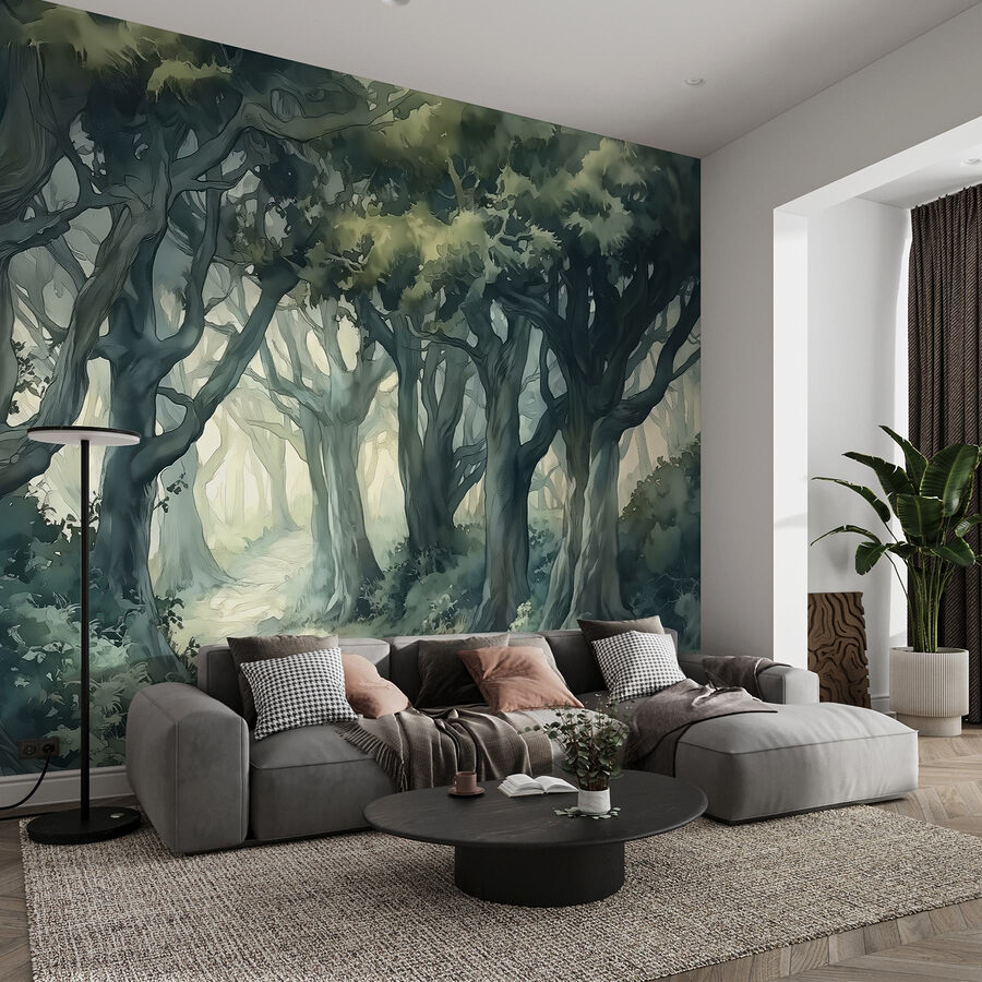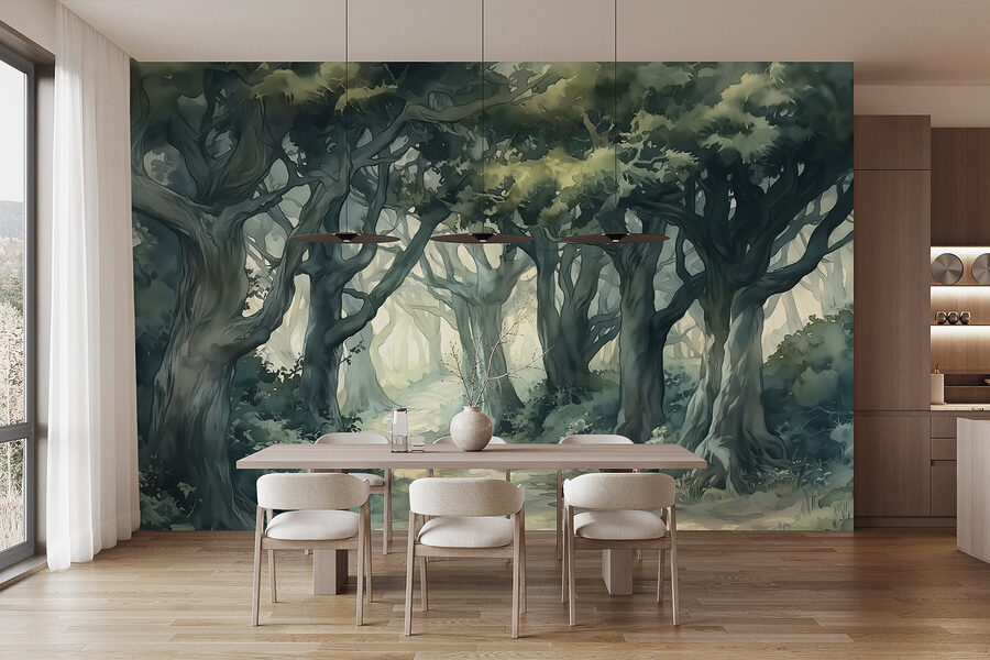 Jemné odstíny a detailně propracované stromy vytvářejí klidnou atmosféru, takže je ideální pro útulný čtecí koutek nebo klidnou ložnici. Představte si, že se usadíte s šálkem čaje a uklidňující výjev vás obklopí jako hřejivé objetí. A kdo říká, že příroda nemůže přijít domů? Přidejte tuto nástěnnou malbu a snění o lesních dobrodružstvích se rázem stane každodenní záležitostí.