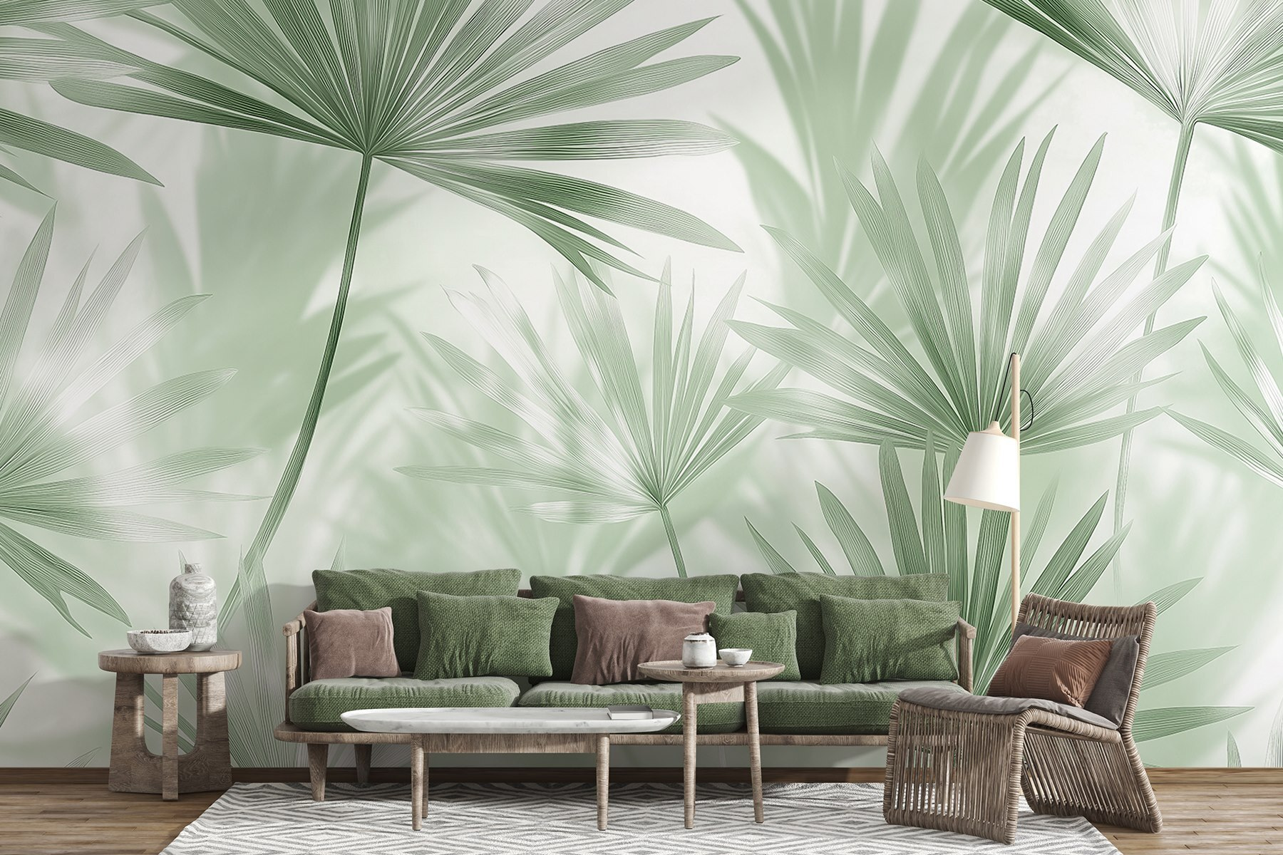 Proměňte jakýkoli prostor v klidnou oázu s touto snovou tapetou „Jemné zemité tóny a delikátní listoví“. Představte si, že jste každý den obklopeni uklidňující zelení a jemnými texturami – ideální pro chvíle, kdy potřebujete trochu uniknout, nebo možná dokonce inspiraci pro svůj další kutilský projekt. Delikátní palmové listy tančí společně a vytvářejí pocit, jako by ve vašem pokoji vanul jemný vánek, bez občasných brouků, kteří si vždy najdou cestu dovnitř. Je to také příjemné na pohled – žádné ostré barvy ani chaotické vzory. Jen vřelé objetí přírody, které přináší klidnou atmosféru, takže je těžké se neusmívat, když popíjíte kávu nebo odpočíváte po dlouhém dni. Připravte se proměnit svou zeď v zajímavý prvek, který spojuje krásu s nádechem tropické klidu!