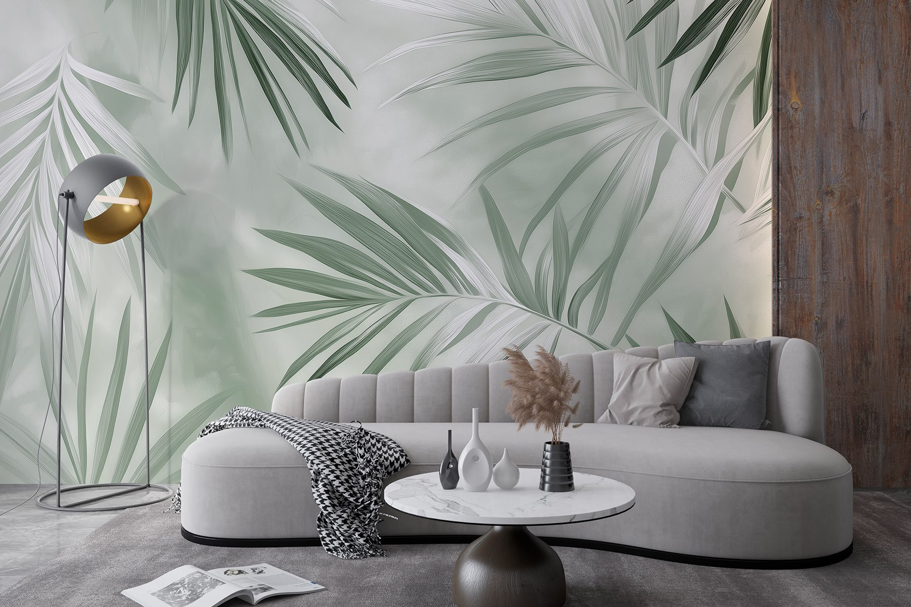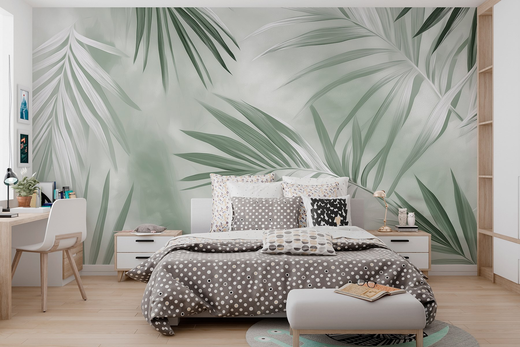 Proměňte jakoukoli místnost v bujnou oázu klidu s touto tapetou „Nature’s Tranquil Green Foliage“ (Klidná zelená zeleň přírody). Představte si, že vstupujete do klidné džungle s jemnými zelenými odstíny, které tančí po vašich stěnách a vy se cítíte, jako byste byli obklopeni přírodou – i když máte z okna výhled jen na město! Jemné tahy palmovými listy šeptají relaxaci, ideální pro vytvoření útulného koutku nebo klidného pozadí pro vaši jogamatku. Představte si líné odpoledne s dobrou knížkou, šálkem čaje a vůní čerstvé země visící ve vzduchu. Je to jako přivést kousek klidného ráje přímo do vašeho domova. Ideální pro každého, kdo chce vyměnit betonovou džungli za trochu botanického blaha. Tak co říkáte? Je čas to tu trochu oživit!