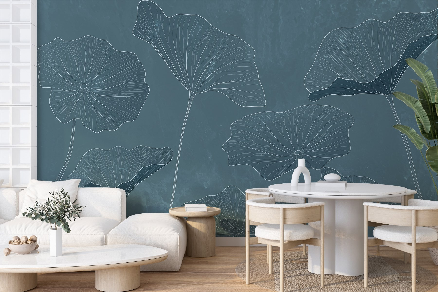 Transform your space with this stunning mural, where a group of leaves gracefully floats on a soothing blue backdrop. It’s not just wallpaper; it’s a little slice of nature that invites tranquility and charm into any room. Imagine waking up to this serene scene each morning—those leaves almost seem to sway with the breeze, offering a daily reminder of the beauty outside.