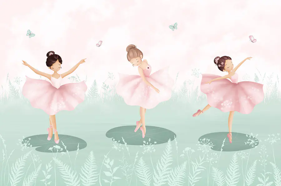 Proměňte svůj prostor pomocí této okouzlující nástěnné malby s rozkošnou skupinou dívek tančících na sluncem ozářeném poli. Je to scéna jako z rozmarného snění, kde vzduch naplňuje smích a kolem poletují motýli. Představte si drobné nožky, jak se točí a víří v těch jemných růžových tutu a navozují pocit radosti a bezstarostnosti. Tato nástěnná malba je ideální do dětského pokoje a podporuje kreativitu a představivost. Jen si představte ty úsměvy a vyprávění příběhů, které by se tu mohly odehrávat, když se malí tanečníci podělí o svá vlastní dobrodružství plná zábavy a přátelství. Střípek štěstí pro každou zeď!