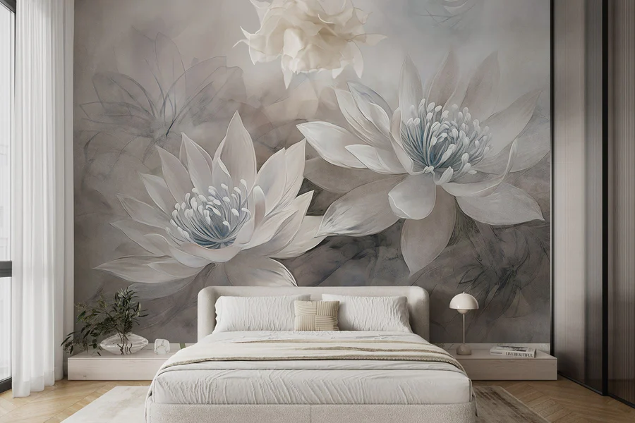 Proměňte jakoukoli místnost v klidnou oázu s tapetou „Delicate Blooms in Soft Hues“. Tato krásná tapeta zachycuje klidnou krásu leknínů, které vypadají, jako by pluly v snové mlze. Jemné bílé a šedé odstíny vytvářejí uklidňující atmosféru – ideální pro klidný koutek na čtení nebo příjemnou vstupní halu. Představte si, jak se uvelebíte ve svém oblíbeném křesle s šálkem čaje v ruce, zatímco toto umělecké dílo vnáší do vašeho prostoru klid. Je to jako jemné objetí přírody pokaždé, když vstoupíte dovnitř. A navíc, kdo by nemiloval trochu květinového kouzla bez nutnosti údržby? Ideální pro ty, kteří milují květiny, ale nedokážou udržet pokojové rostliny naživu!
