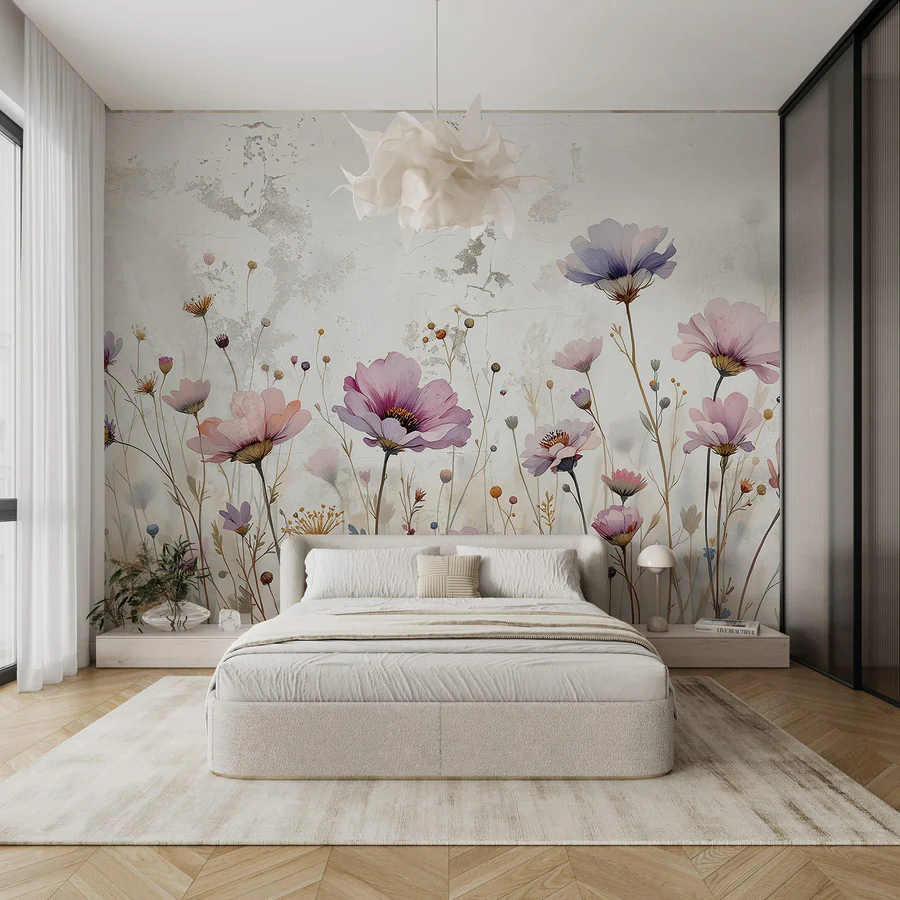 This stunning wall mural of flowers dances across your wall, bringing a touch of springtime bliss indoors—no watering needed! With soft watercolor hues, it whispers sweet secrets of nature, inviting the beauty of a garden right into your living space. Imagine curling up with a book, the gentle petals gazing down like friends. It’s like having a secret oasis that never wilts. Plus, the subtle crackle effect in the background adds a pinch of character, as if it’s been graced by time. So, breathe in that fresh floral vibe and let this mural brighten up your day!
