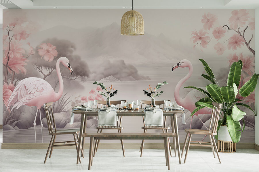 Proměňte svůj prostor v klidnou oázu s nástěnnou malbou „Flamingos in a Lake“ (Plameňáci na jezeře). Představte si to: jemné růžové odstíny tančící na zamlženém pozadí, kde elegantní plameňáci ladně klouzají po klidné vodní hladině. Je to jako závan čerstvého vzduchu přímo na vaší zdi – kdo by nechtěl kousek přírody ve svém interiéru? Představte si, jak popíjíte čaj a obdivujete krásu japonské zahrady, a to vše z pohodlí svého obývacího pokoje. Tato tapeta není jen dekorací, ale navozuje klid a podněcuje snění. Je ideální pro ty, kteří milují jedinečné dekorace, a možná vás inspiruje k dalšímu dobrodružství. Kdo ví, možná dokonce začnete plánovat dovolenou v tropech!