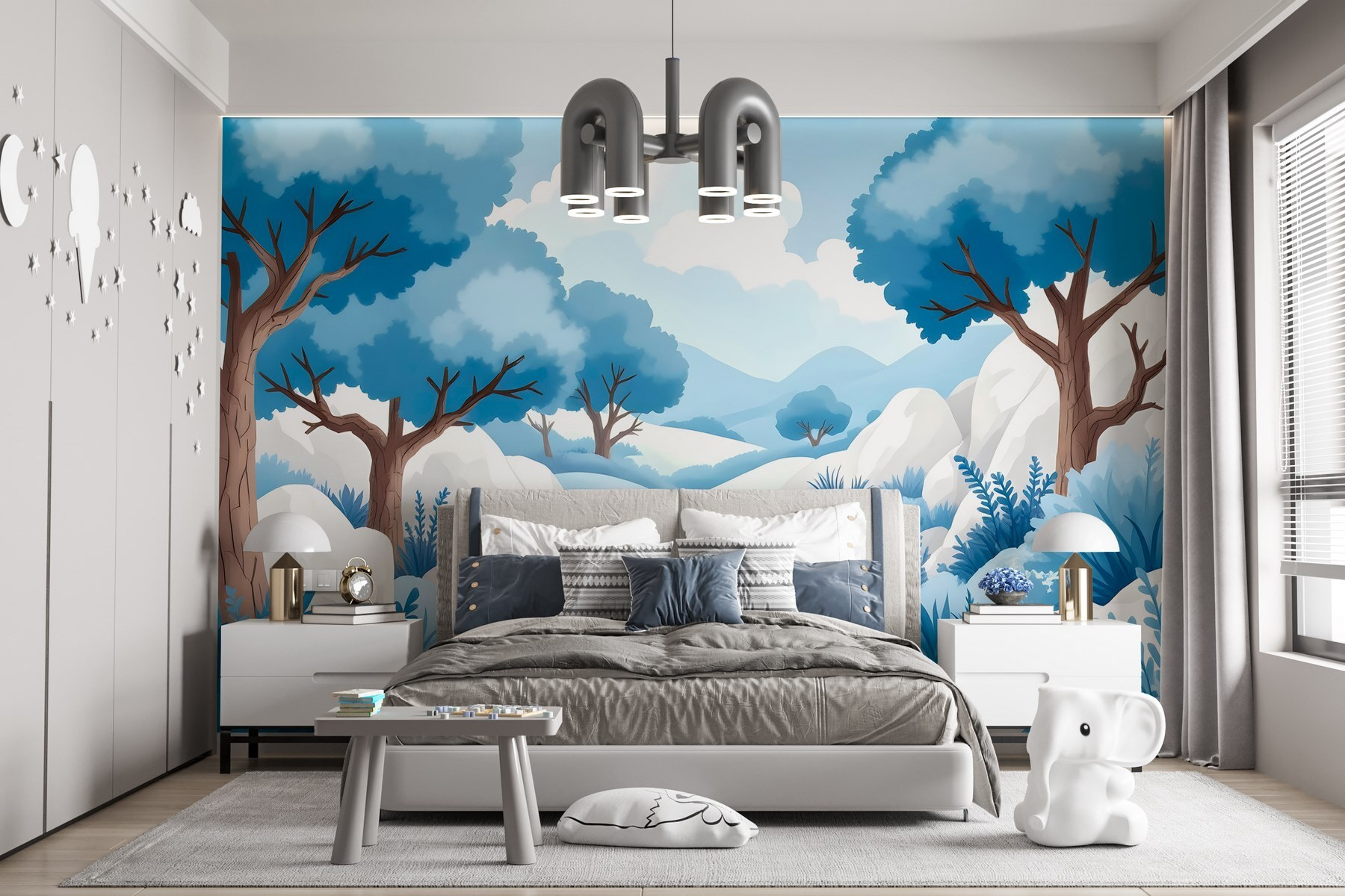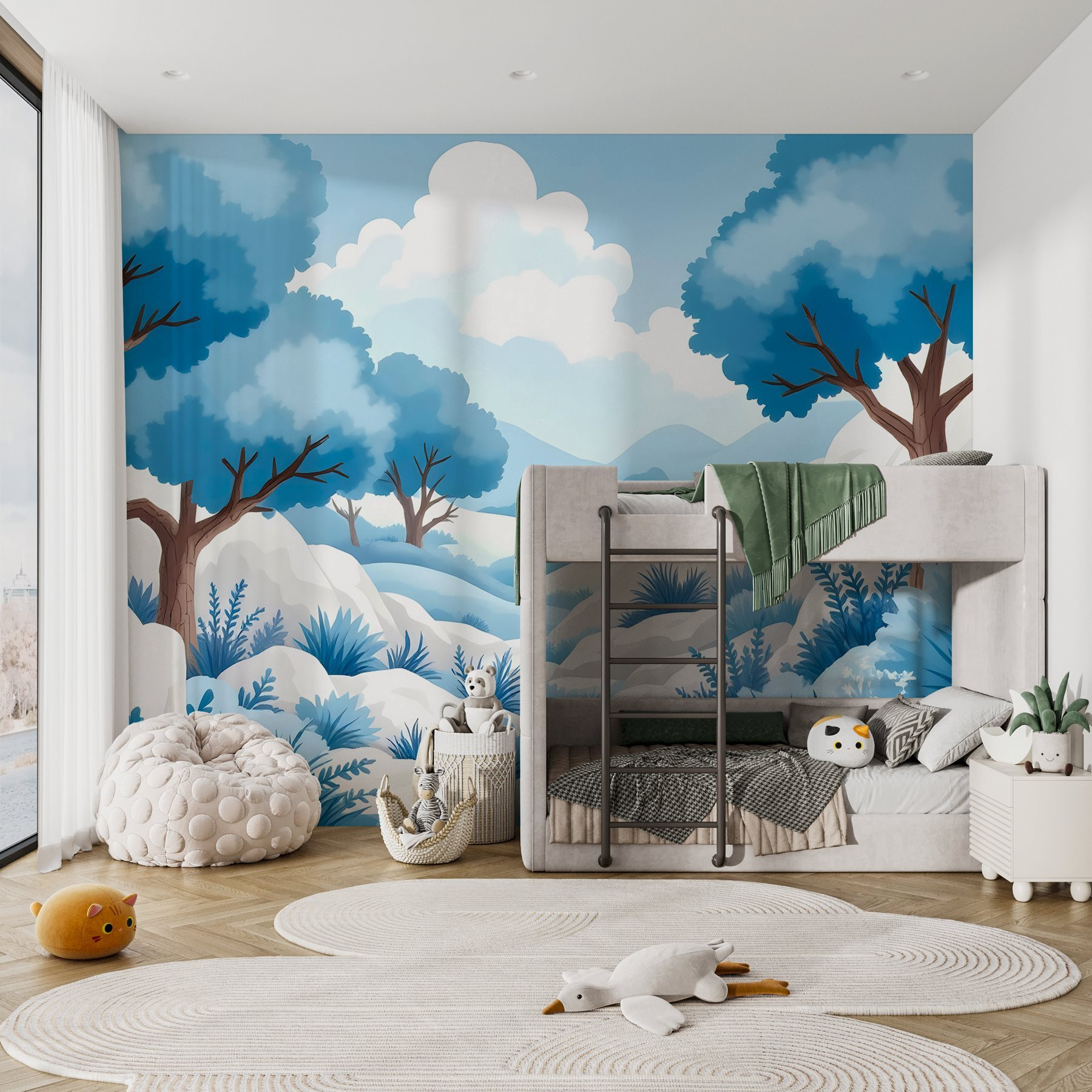 Proměňte své stěny v pohádkovou únikovou destinaci s touto fototapetou „Zasněžená krajina“. Představte si, že se probouzíte do svěží modré a klidné bílé barvy – jako by váš pokoj obklopovala jemná sněhová přikrývka. Stromy se svými podivnými větvemi jako by šeptaly tajemství dávno minulých zimních dnů. Je to jako vstoupit do klidného obrazu, který se perfektně hodí do útulných koutů nebo veselých obytných prostor. Představte si někoho, kdo popíjí čaj a vychutnává si klidnou atmosféru, kterou tato tapeta přináší. Není to jen dekorace, je to mini dovolená pokaždé, když se rozhlédnete kolem. Ideální pro ty, kteří milují přírodu a fantazii!