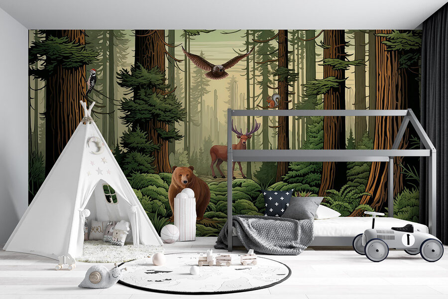 Proměňte jakýkoli prostor v útulné lesní útočiště s touto okouzlující „nástěnnou malbou Les se zvířaty a ptáky“. Představte si, že vstoupíte do svého pokoje a máte pocit, jako byste se ocitli v klidném lesním prostředí. Představte si zvědavou lišku, která vykukuje zpoza mohutného stromu, a elegantního jelena, který stojí vzpřímeně – to je skvělý námět k rozhovoru! Svěží zeleň vás obklopí vřelým objetím a i ten nejrušnější den se vám bude zdát o něco klidnější. Je to jako umělecké dílo přírody, které vnáší život a trochu divokého kouzla přímo na vaše stěny. Ideální pro všechny, kteří touží po troše dobrodružství doma!