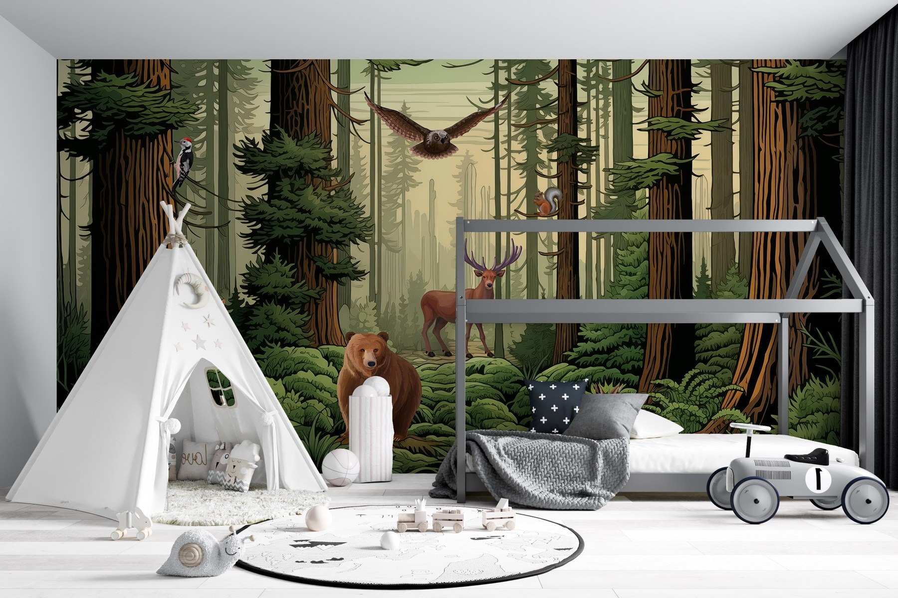 Transform any space into a cozy forest retreat with this enchanting “Wall Murals Forest with Animals and Birds.” Imagine stepping into your room and feeling like you’ve wandered into a tranquil woodland. Picture a curious fox peeking from behind a mighty tree and an elegant stag standing tall—talk about a conversation starter! The lush greenery wraps you in a warm embrace, making even the busiest of days feel a tad more peaceful. It’s like nature’s own artwork, bringing life and a bit of wild charm right to your walls. Perfect for anyone who craves a touch of adventure at home!