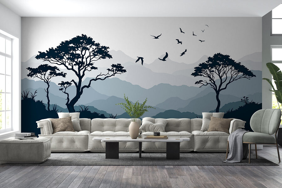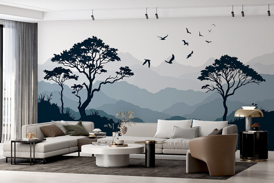 Proměňte svůj prostor pomocí úchvatné tapety „Ptáci letící nad pohořím“. Představte si tuto klidnou scenérii obklopující vaše stěny a vytvářející atmosféru klidu, o které jste ani nevěděli, že ji potřebujete. Jemné odstíny hor a stromů navozují pocit klidu, téměř jako mini dovolená bez balení kufrů! Pokaždé, když se na ně podíváte, zdá se, že ti ptáci šeptá svobodu.