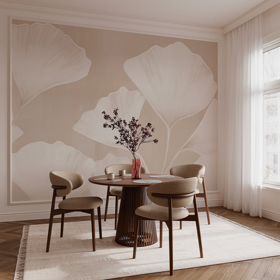 Proměňte svůj prostor pomocí nástěnné malby “Jemné listí v jemných tónech”, kde se příroda setkává s klidnými vibracemi. Představte si, že vejdete do místnosti, která bude připomínat klidný lesní únik. Jemné odstíny a půvabné vzory listů našeptávají uvolnění a jednoduchost. Je ideální pro vytvoření útulného čtecího koutku nebo dodá vašemu obývacímu pokoji svěží, vzdušný pocit. Přátelé se možná zatoulají dovnitř, podívají se a řeknou: “Páni, odkud to je?”. Najednou se o vašich stěnách bude mluvit jako o městě. Není to jen dekorace, je to závan čerstvého vzduchu přímo u vás doma. Dokonale elegantní, lehce uklidňující, je to druh designu, který vyvolává komplimenty a možná i trochu závisti.