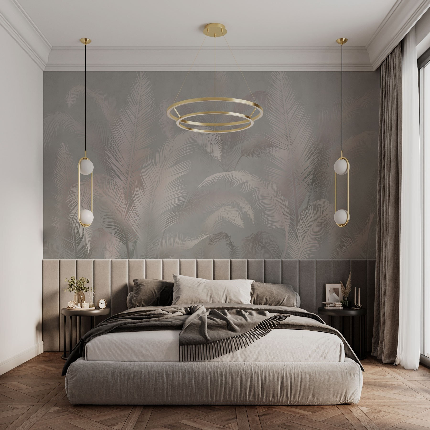 Transform your space into a serene oasis with this delightful mural featuring delicate palm leaves in soft, muted tones. Imagine waking up to a gentle palette that whispers peace rather than shouts for attention. The soothing colors create a backdrop that feels both fresh and timeless—perfect for any room that needs a little splash of nature’s charm.