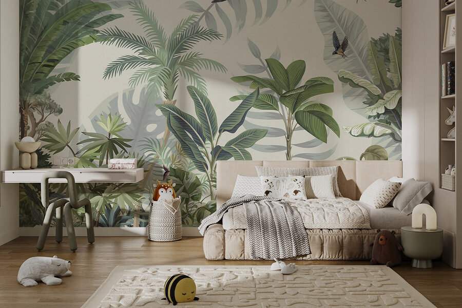 Proměňte obyčejnou zeď v bujný ráj s touto tropickou fototapetou! Představte si zářivou zeleň a veselé ptáky poletující kolem – je to jako přivést si miniaturní deštný prales přímo do vašeho obývacího pokoje. Představte si, jak popíjíte ranní kávu, zatímco vás tato tapeta přenese do sluncem zalité džungle. Uklidňující barvy a bohaté detaily vyzařují teplo a relaxaci. Navíc je to skvělý námět k rozhovoru! Ať už jste milovníkem přírody nebo jen potřebujete vnést do svého domova trochu života, tato tapeta dodá každému trochu dobrodružné nálady – kdo by řekl, že stěny mohou být tak vzrušující?