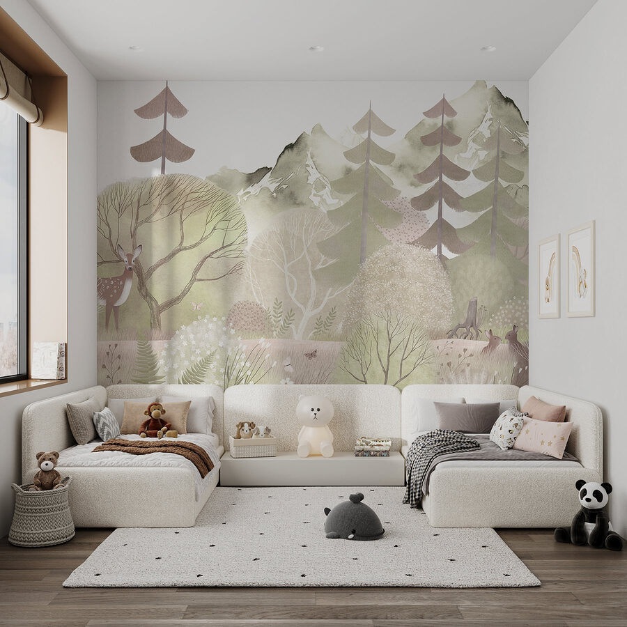 Proměňte jakoukoli místnost v klidné lesní útočiště s touto okouzlující tapetou „Jelen v lese“. Představte si, že vstupujete do klidného lesa, kde jemná přítomnost jelenů a měkké, tlumené barvy vytvářejí hřejivé objetí. Každý pohled na tuto tapetu vyvolává pocit uvolnění, takže je ideální do útulného obývacího pokoje nebo do ložnice, kde se můžete snít. Ať už popíjíte kávu, sníte nebo dokonce čtete, tato tapeta vám šeptá klid. Je to příroda, umělecky zachycená, která přináší venkovní prostředí přímo do vašeho domova. Tak do toho, nechte své stěny vyprávět příběh!
