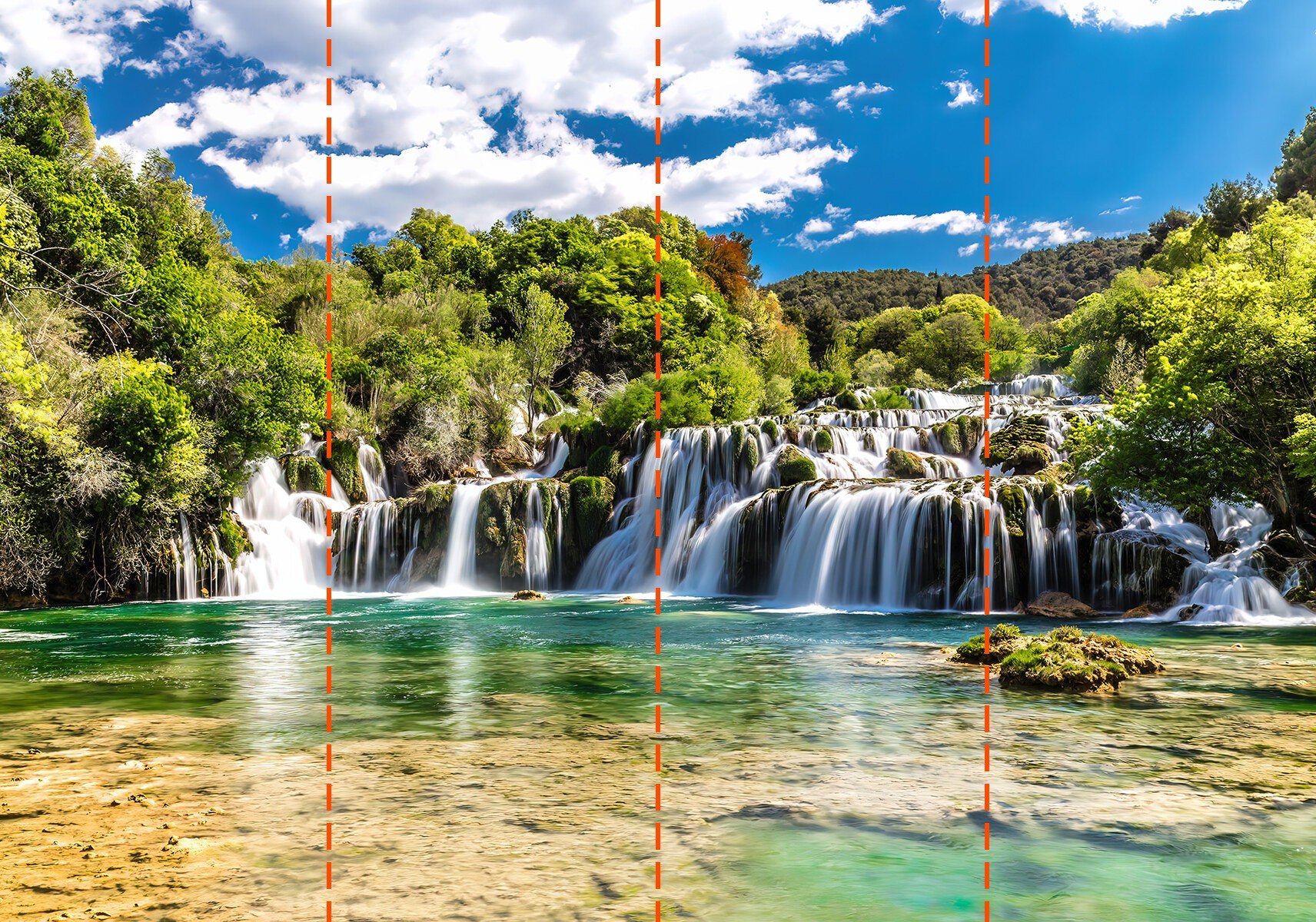 Tapety budou připraveny podle rozměrů uvedených v procesu objednávání. Plátno bude rozděleno na vhodné části, každá o šířce až 50 cm.