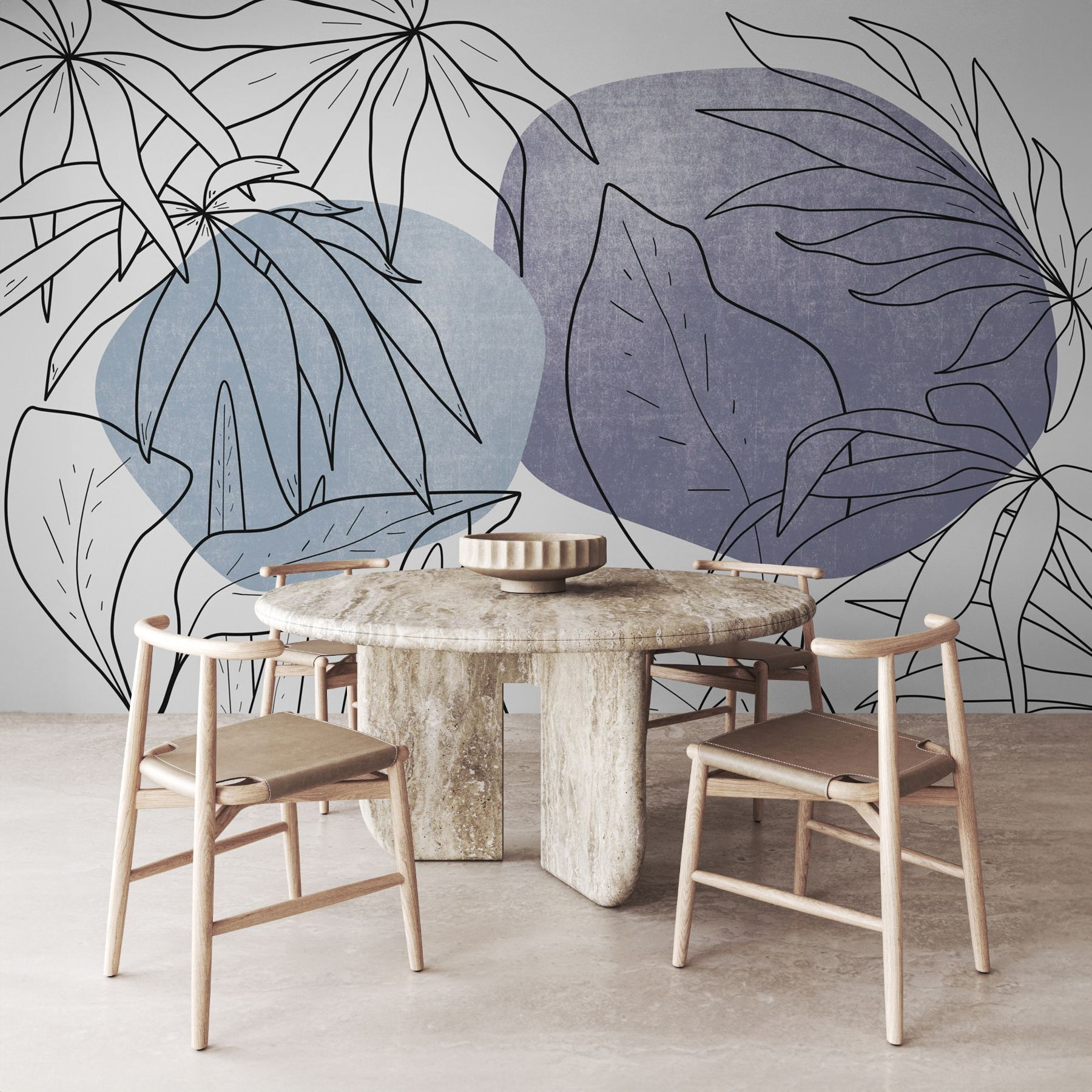 Proměňte obyčejnou zeď v malý kousek přírody pomocí této okouzlující nástěnné malby s hravými listy a klidnými modrými kruhy. Představte si, že vejdete do místnosti, kde se atmosféra okamžitě změní na klidnou a svěží, jako jemný vánek v teplém dni. Čisté linie a jemné barvy vytvářejí umělecký kontrast, který vyvolává radost, aniž by byl přehnaný. Je to jako pozvat kousek venkovního prostředí dovnitř, ale bez brouků. Ať už se nachází v útulném zákoutí, nebo v hlavním obytném prostoru, tato nástěnná malba našeptává relaxaci a kreativitu, díky čemuž se každá místnost cítí mnohem příjemněji. Ideální pro ty, kdo mají rádi jedinečné dekorace, které dodávají nádech osobnosti!