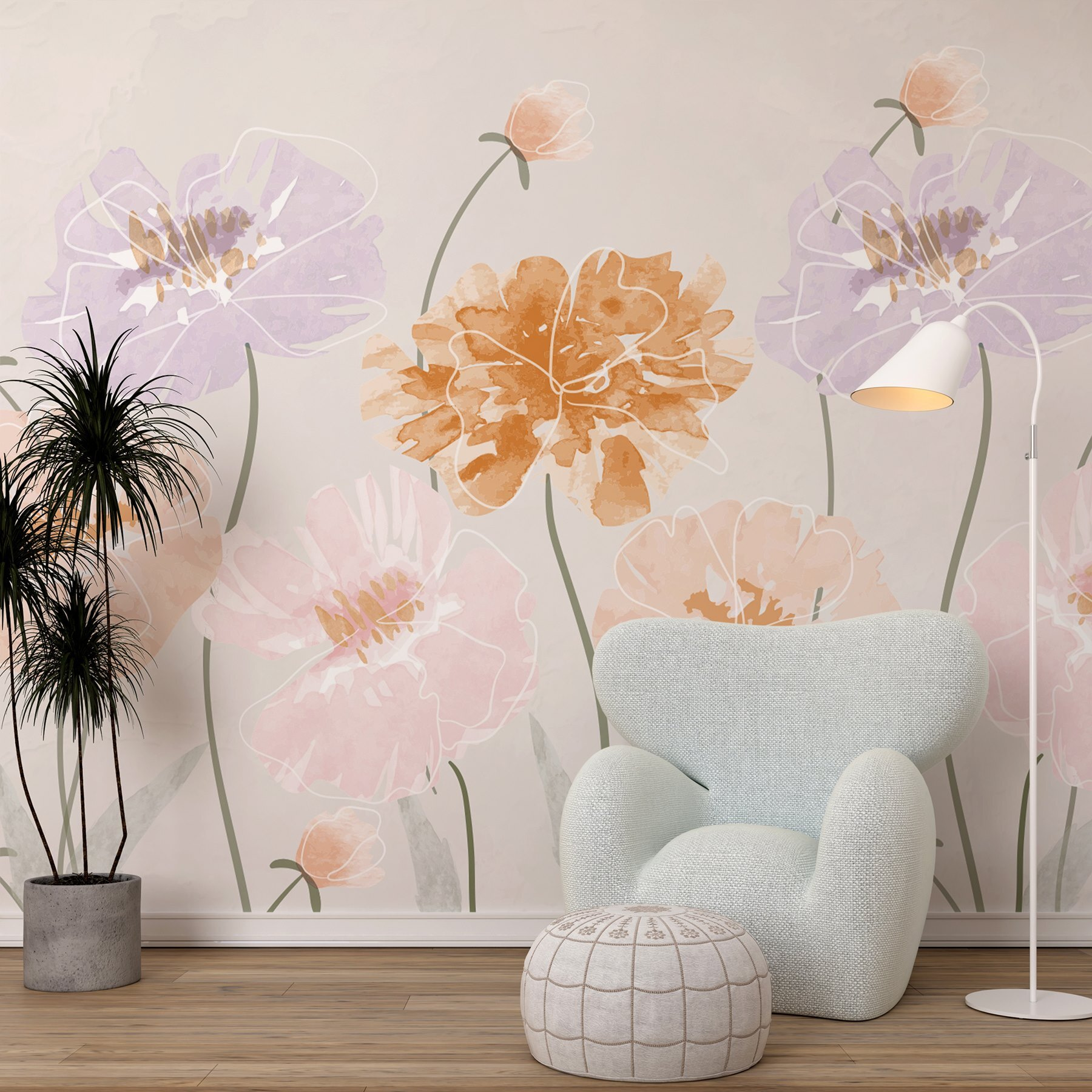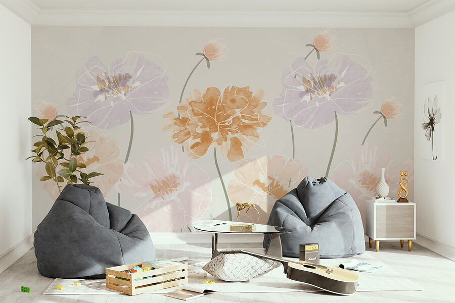 Proměňte svůj prostor pomocí této živé nástěnné malby s nádhernou směsí květin a listů. Představte si, jak každé ráno vstupujete do zahrady, kde jemné okvětní lístky šeptají příběhy o rozkvetlé radosti. Jemná paleta barev – představte si růžovou a jemnou šeříkovou – navozuje uklidňující atmosféru. Jako by se příroda rozhodla přenést veškeré své kouzlo do interiéru. Představte si, že popíjíte ranní kávu obklopeni těmito veselými květy. Tato nástěnná malba není jen dekorací, ale i zlepšovačem nálady! Skvěle se hodí k oživení obývacího pokoje, ložnice nebo útulného zákoutí. Ponořte se do květinové fantazie, která hosty rozesměje při každém vstupu.